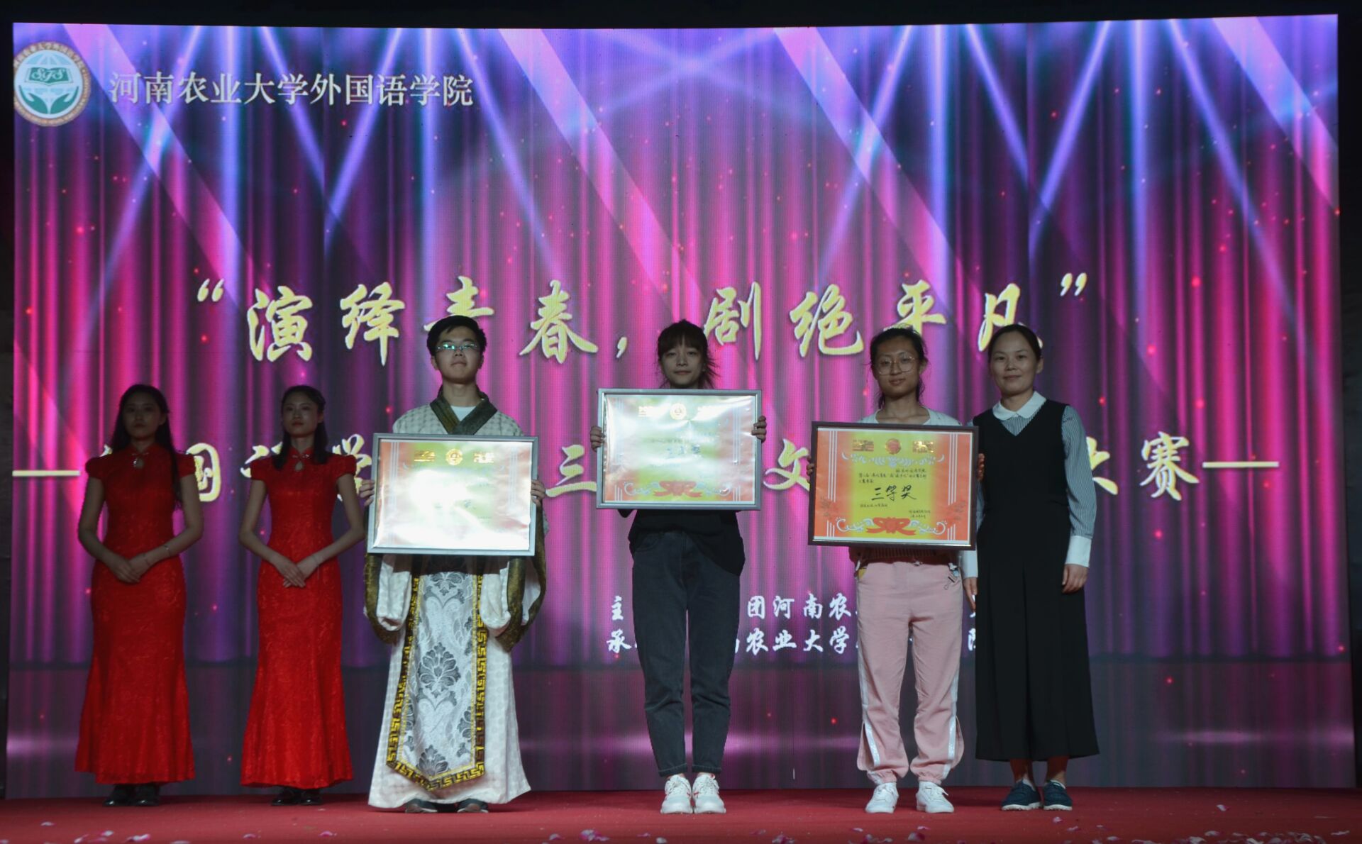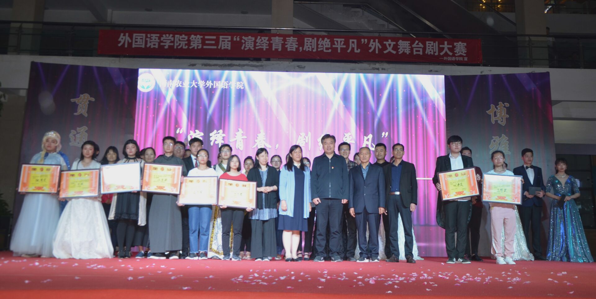 于2019年5月10日晚上六点半在龙子湖校区一餐厅广场举办外文舞台剧大赛决赛。校党委副书记、工会主席李成吾、院关工委常务副主任吴海峰、校团委书记马菲等出席比赛,张莉、杨华、刘靖宇、刘佳、聂宝玉担任评委。Bet365网址
