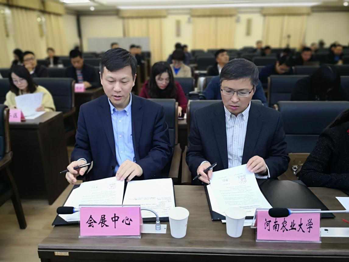 会议现场,张俊杰与郑州国际会展中心有限公司揭开宇副总经理签订了《Bet365中文网址 与郑州国际会展中心公共服务领域外语标识规范建设合作备忘录》,会后并就双方共同关心的话题进行了深入交流,达成了具体合作事宜。