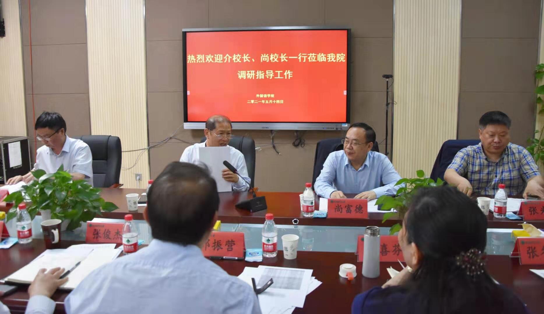 院党委书记邓振营、院长张俊杰进行了工作汇报。与会代表围绕新文科视角下的外语学科建设、人才培养、课堂教学改革、社会服务、多元文化体验等方面进行发言。发言过程中,介晓磊校长与大家进行了热情交流,就大家提出的观点进行了热烈讨论,就大家提出的问题予以认真解答。