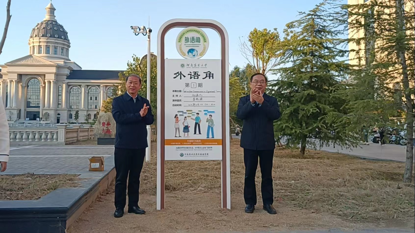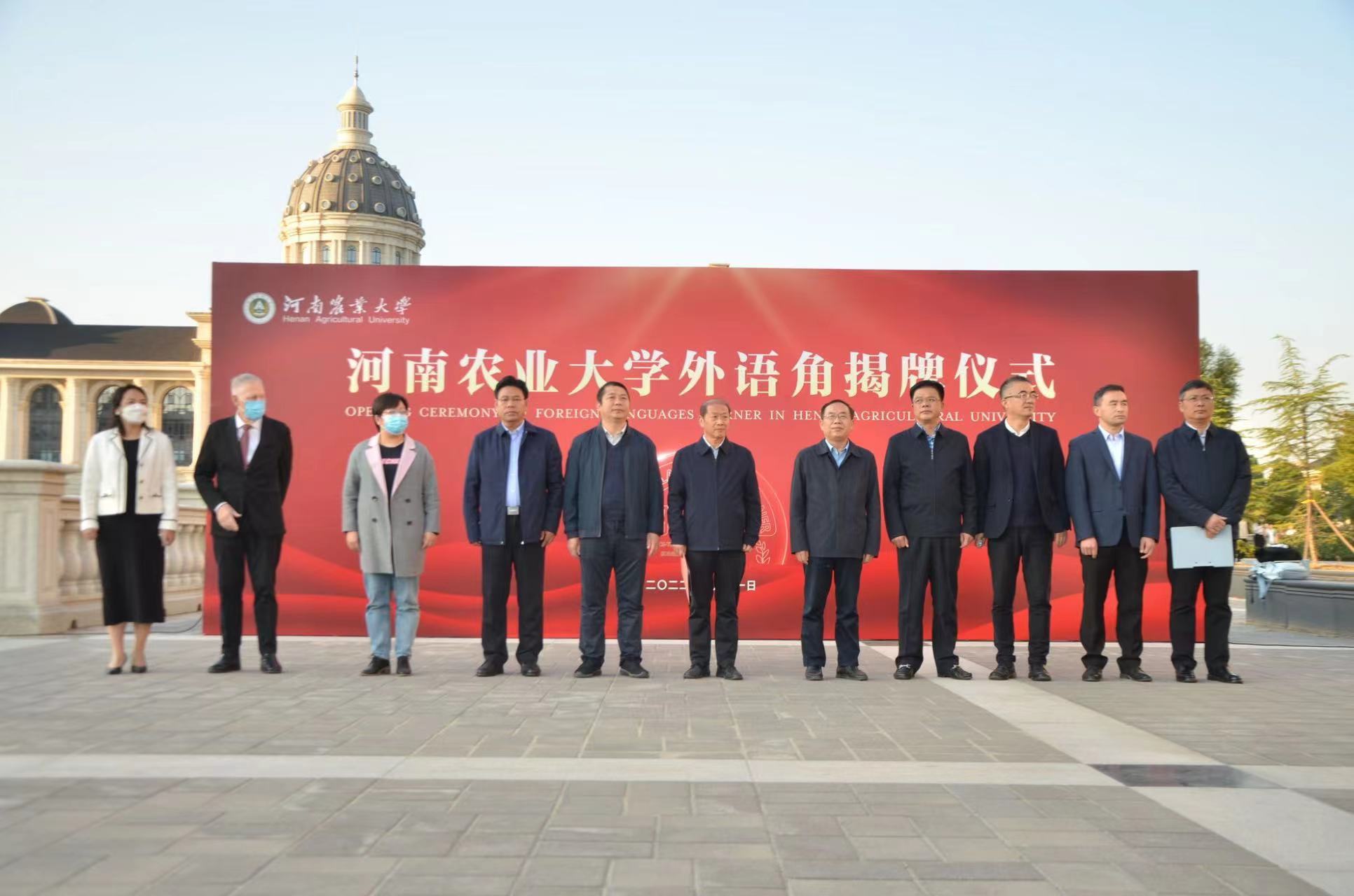 本网讯(审稿:王启佩 供稿:陈桃)10月11日下午,“河南农业大学外语角”揭牌仪式在龙子湖校区举行。校长介晓磊、副校长尚富德出席活动,党委宣传部、党委学工部、校团委、教务处、国际交流合作处、研究生院等相关职能部门负责人和外籍教师代表、Bet365网址 师生代表参加活动。