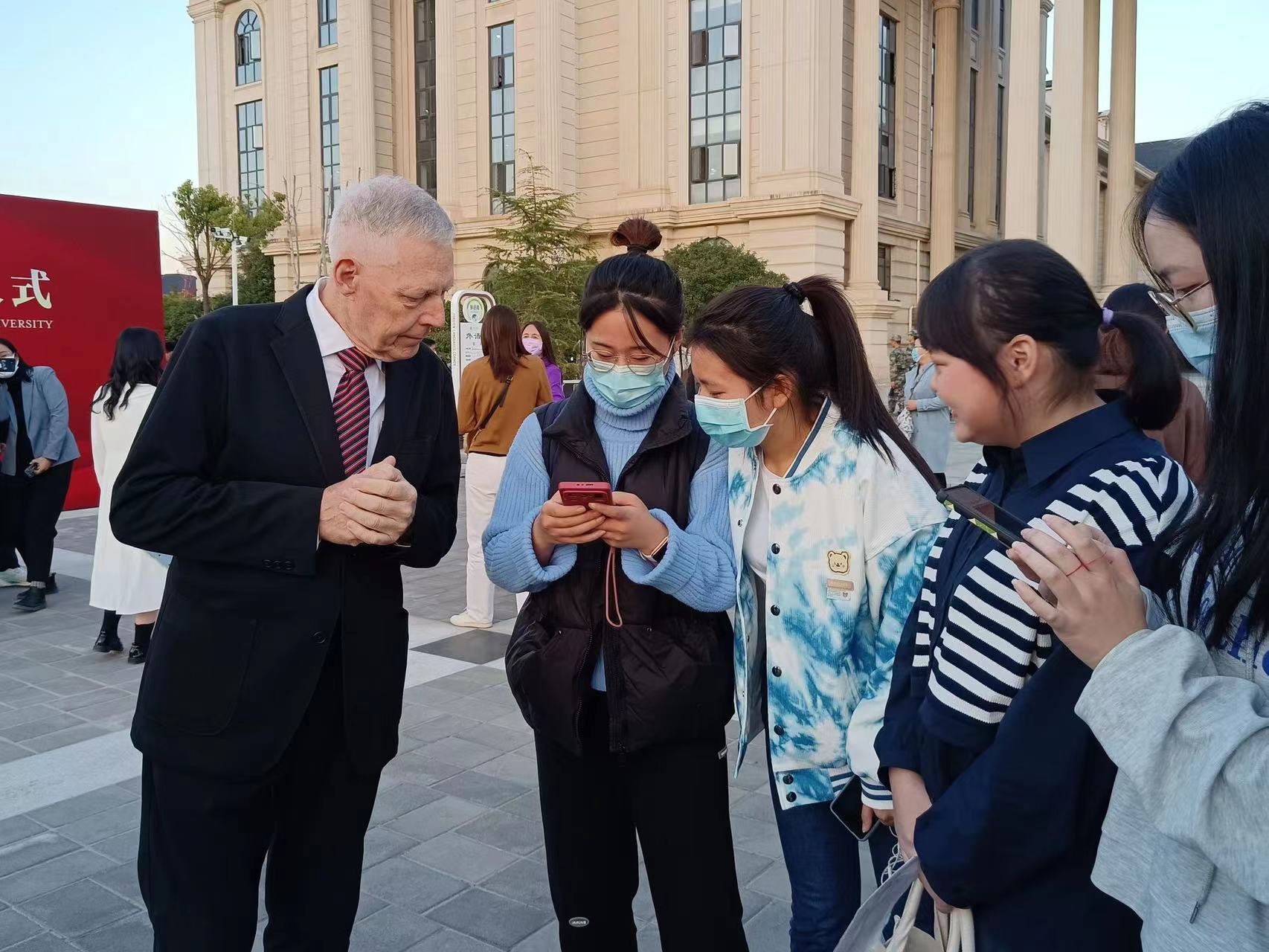 介晓磊发表讲话,他用英语给现场的师生提出三点希望,一是用好外语这个工具,这个武器,外语是一项非常重要的交流技能,在新时代提高用外语表达的能力,才能不断讲好中国故事;二是师生积极参与,保持热爱,勇敢表达,进一步掌握“听说读写译”五项基本技能,为学校创建中国特色世界一流农业大学打好基础;三是发挥好外语角平台的作用,Bet365网址