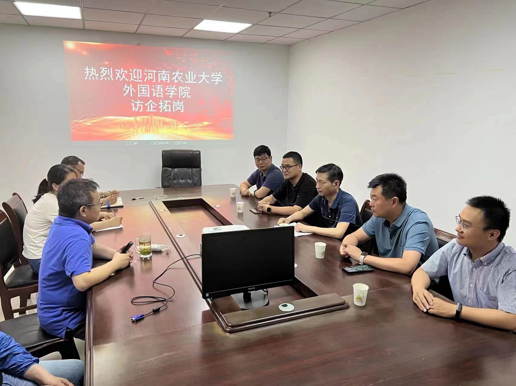 在河南伟恩实业有限公司,张卫东一行与公司负责人黄卫进行了深入交流,黄卫对张卫东一行的到访表示热烈欢迎,详细介绍了公司概况、业务范围、人才需求和支持保障情况,并表示公司正在大力拓展全球业务,希望有更多的外语类人才加入。