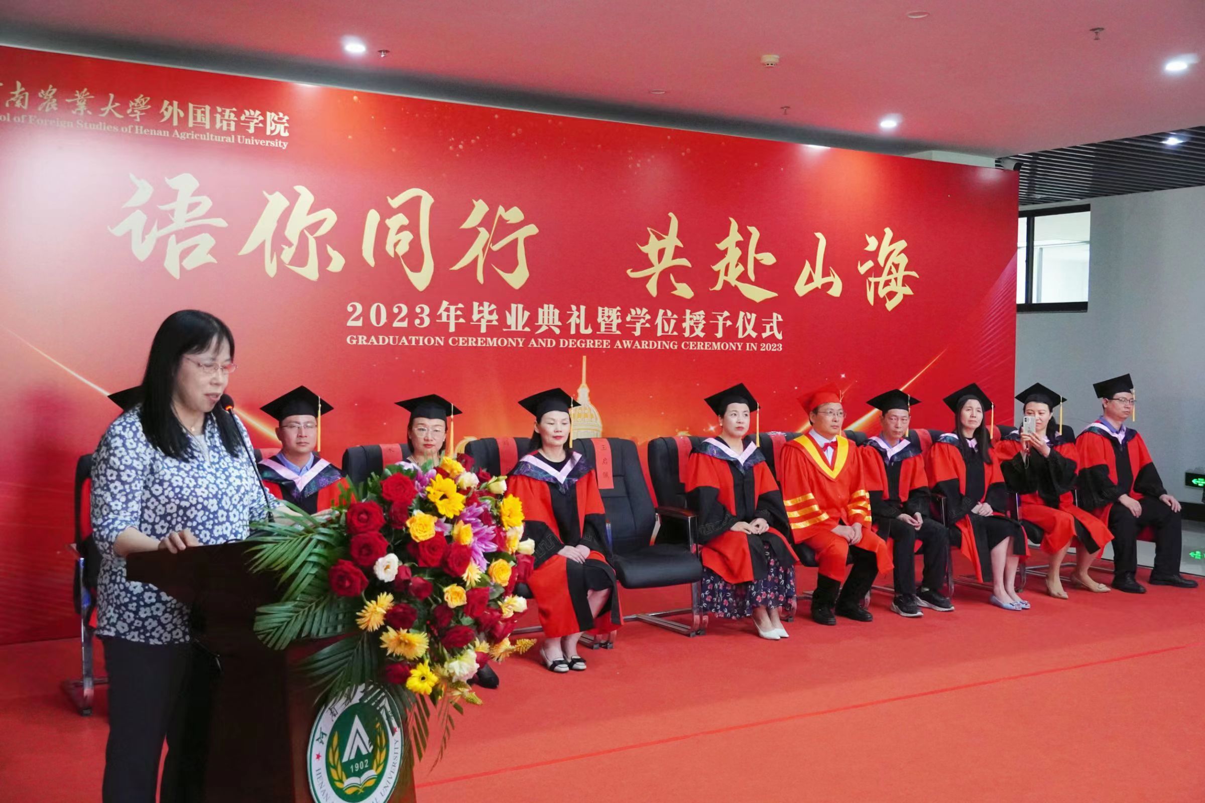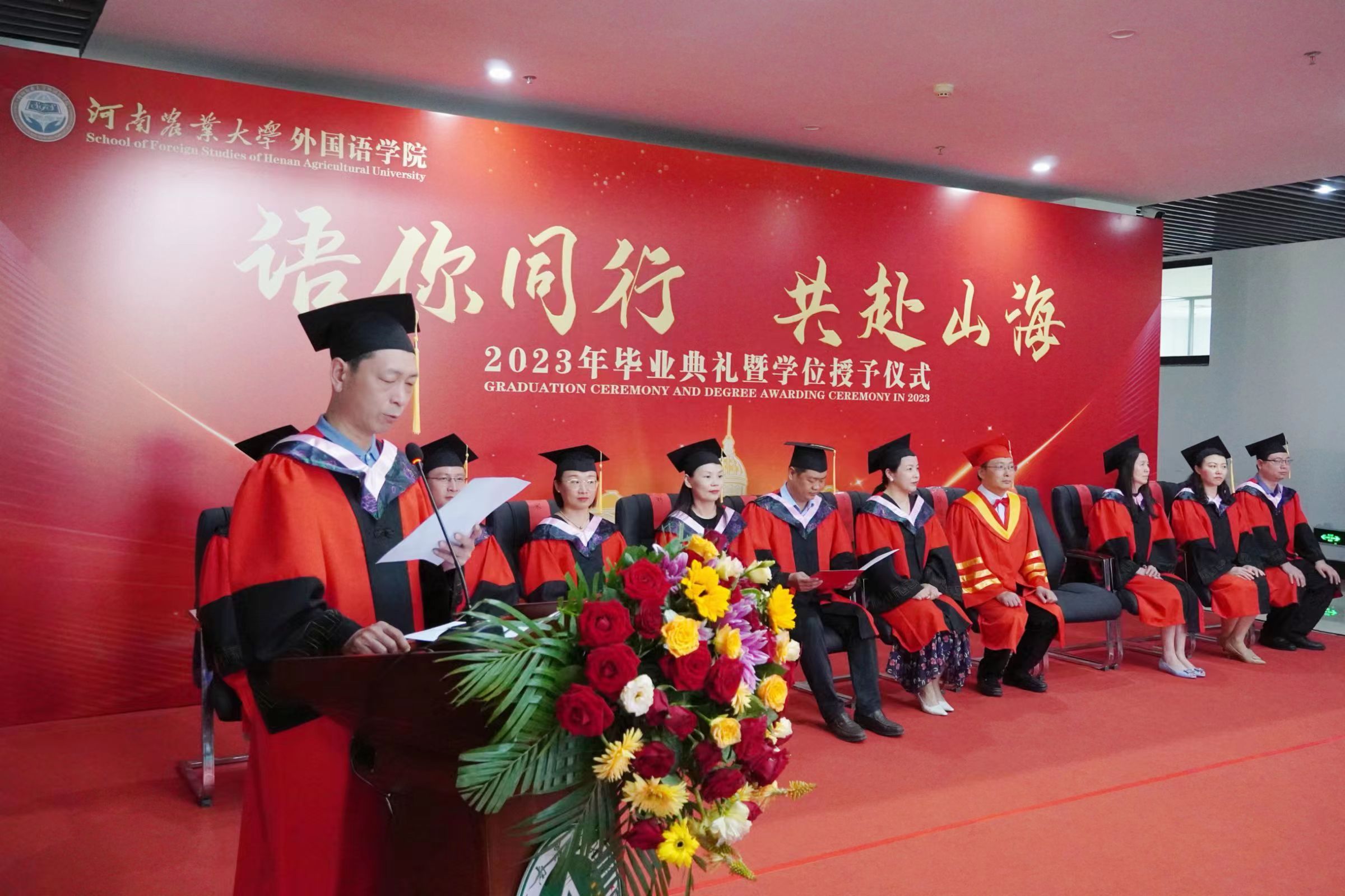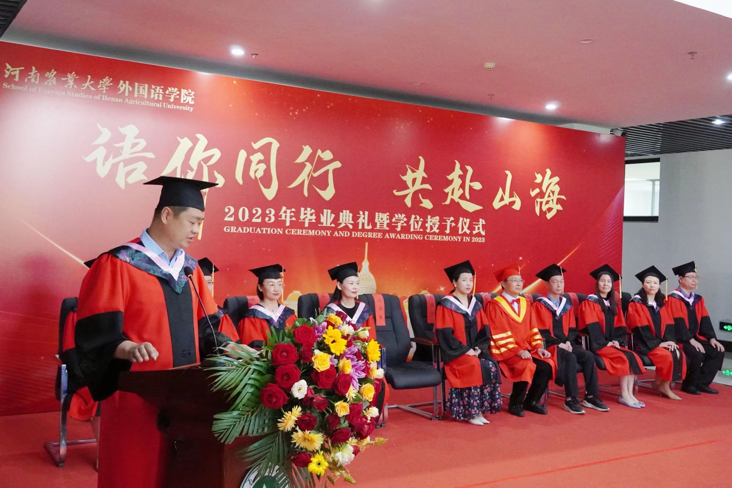 张俊杰总结了Bet365网址 四年来的发展成绩,回顾了同学们的成长经历,并对2023届全体毕业生提出了殷切希望:一是希望大家长存明辨是非的理性精神,在现实世界里学会为自己的选择负责;二是希望大家永葆热爱祖国的赤子之心。他指出,爱国之行、报国之志是一个人的立身之本、成才之基,也是农大人一脉相承的信念底色,为国家的富强和民族的复兴做出贡献是每个中华儿女义不容辞的责任;三是希望大家胸怀包容开放的思想,为构建人类命运共同体贡献我们外语学者的力量。最后,他寄语毕业生们谨记明德笃志、励学尚行的院训,发扬农大人的质朴、勤奋和实干精神,恪守诚信、坚持学习,在服务社会中建功立业。