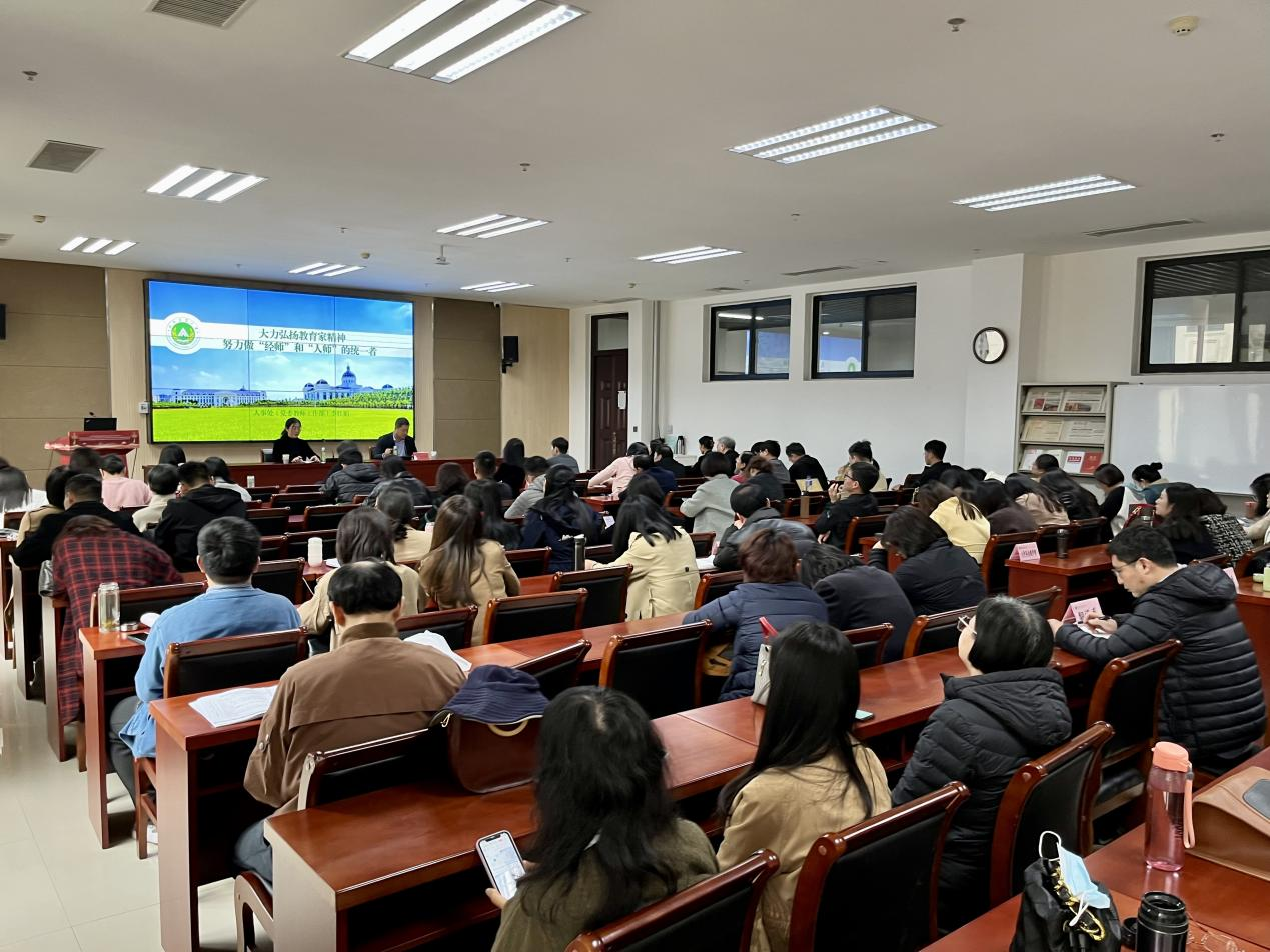 李红娟以《大力弘扬教育家精神 努力做“经师”和“人师”的统一者》为题,从习近平总书记关于师德师风建设的重要论述、师德师风建设主要内容、做“经师”和“人师”的统一者等三个方面进行了阐述,结合违反教师职业行为十项准则典型案例,勉励大家充分认识师德师风建设的重要性,廉洁从教,依法执教,自觉遵守师德规范,守住师德底线,以实际行动落实立德树人根本任务,切实担负为党育人、为国育才光荣使命。