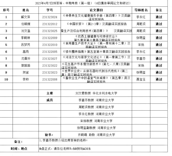 论证会上,三位主席宣布论证流程。参加开题及中期考核的研究生依次阐述了论文的选题背景、研究意义、论文框架、理论基础和论文完成情况等。委员会秉持严谨负责的学术态度,提出具有针对性、建设性的问题及修改建议,学生认真回答了委员会的提问。论证全程严肃紧张、有条不紊。最后,经委员会集体投票决议,29名研究生通过预答辩暨中期考核,1名研究生通过开题。