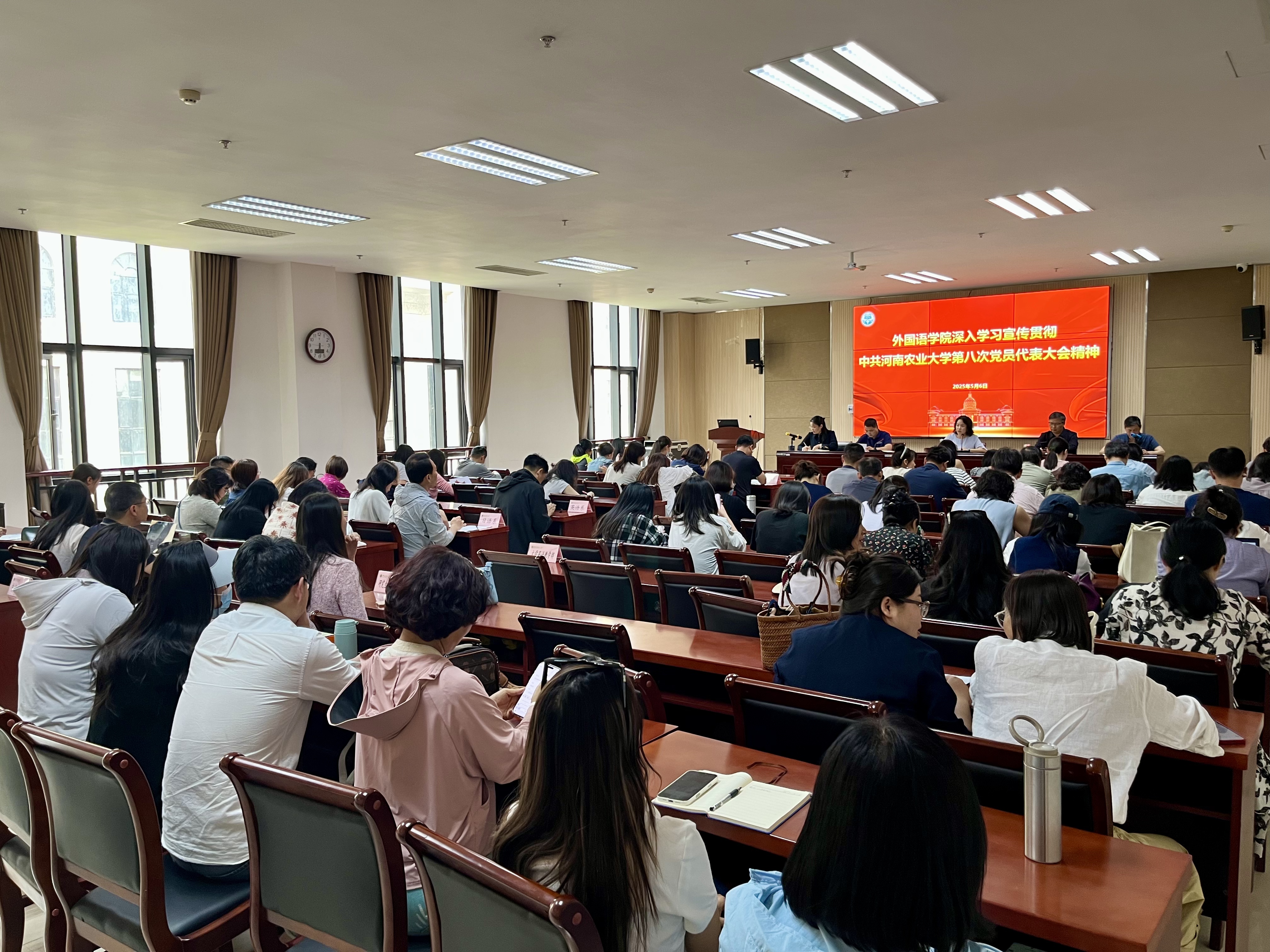 王燕萍强调,中国共产党河南农业大学第八次代表大会,是在进一步全面深化改革、推进中国式现代化的重要阶段,在“十四五”规划收官、“十五五”发展谋篇布局的时代节点,在学校决胜“双一流”、深化与中国农业科Bet365网址 融合发展,全力推进中国特色世界一流农业大学创建的关键时期,召开的一次十分重要的会议。她指出,Bet365网址 全体教职工要深刻领会党代会精神,将思想和行动统一到大会精神上来,立足Bet365网址 实际,明确发展目标,凝聚发展力量,深刻领会学校改革发展面临的机遇与挑战,立足新发展阶段,贯彻新发展理念,融入新发展格局。面对当前世界之变、时代之变、历史之变,Bet365网址 要顺势而为、乘势而上,不断加强学科建设、提升教学质量、深化科研创新、拓展国际交流,要以强烈的使命感和责任感,锚定目标求实效,精诚团结聚合力,为学校创建中国特色世界一流农业大学贡献外语力量。