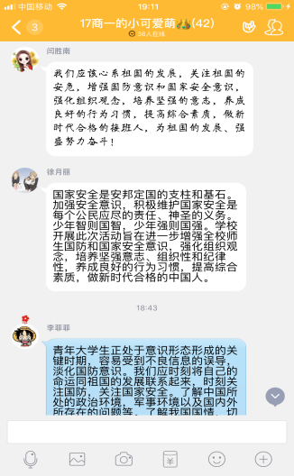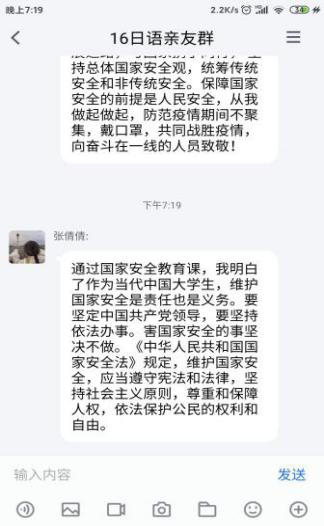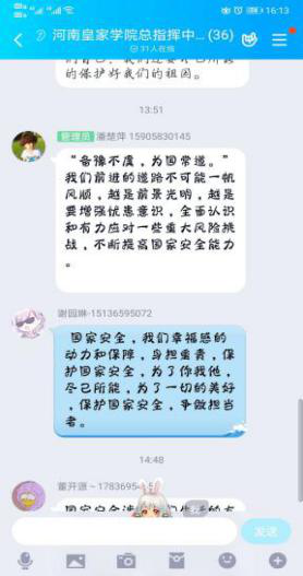 组织各支部团员认真观看“千万学生同上一堂国家安全教育课”,使其集中学习国家安全观理论知识。并开展主题团日活动,进一步拓展学习成果。与此同时,学校利用官方微博、官方微信公众号等宣传平台,发布推送国家安全知识和相关法律法规内容,营造了浓厚的安全教育氛围。同学们纷纷表示,作为新时代的团员青年,将以身作则,自觉遵守相关法律规定,不做有危害祖国安全、荣誉和利益的行为,竭尽全力维护国家安全。