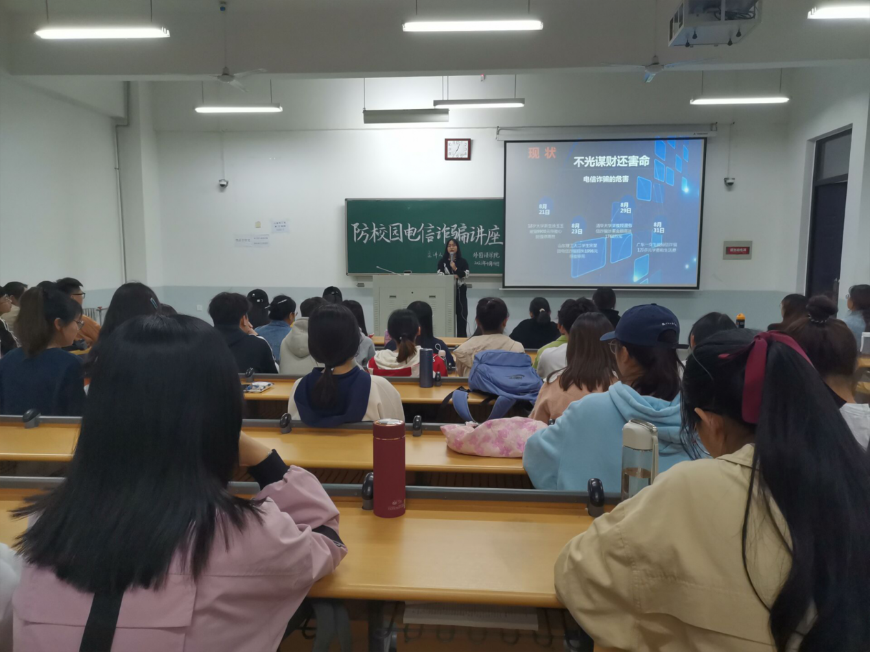 本网讯(审稿:穆君怡 供稿:王莉)为提高Bet365中文网址 学生对电信诈骗的防范意识和识别能力,创建安全文明的Bet365网址 环境,Bet365中文网址 于4月14日晚上七点在龙子湖校区繁塔楼E202教室举办了防校园电信诈骗学习主题讲座。本次讲座由Bet365网址 辅导员穆君怡主持,各班班长及团支书参加了此次讲座。