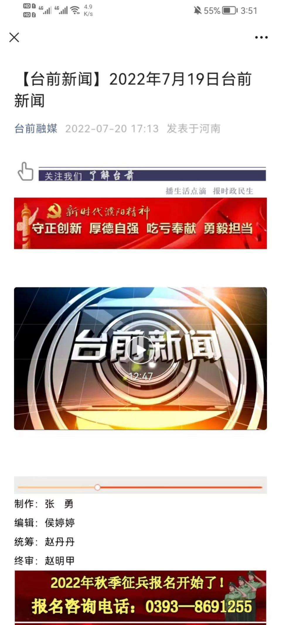 据悉,此次社会实践活动受到台前融媒、濮阳日报社、台前新闻、濮阳新闻的报道。“云飞风起掷台前”实践队,关注三农,服务三农,展现了团结友爱、自强不息的团队风采,不仅推动了主流的、积极的思想观念在基层乡村传播和乡村文化产业的发展, 同时也为乡村的发展注入了青年的力量。
