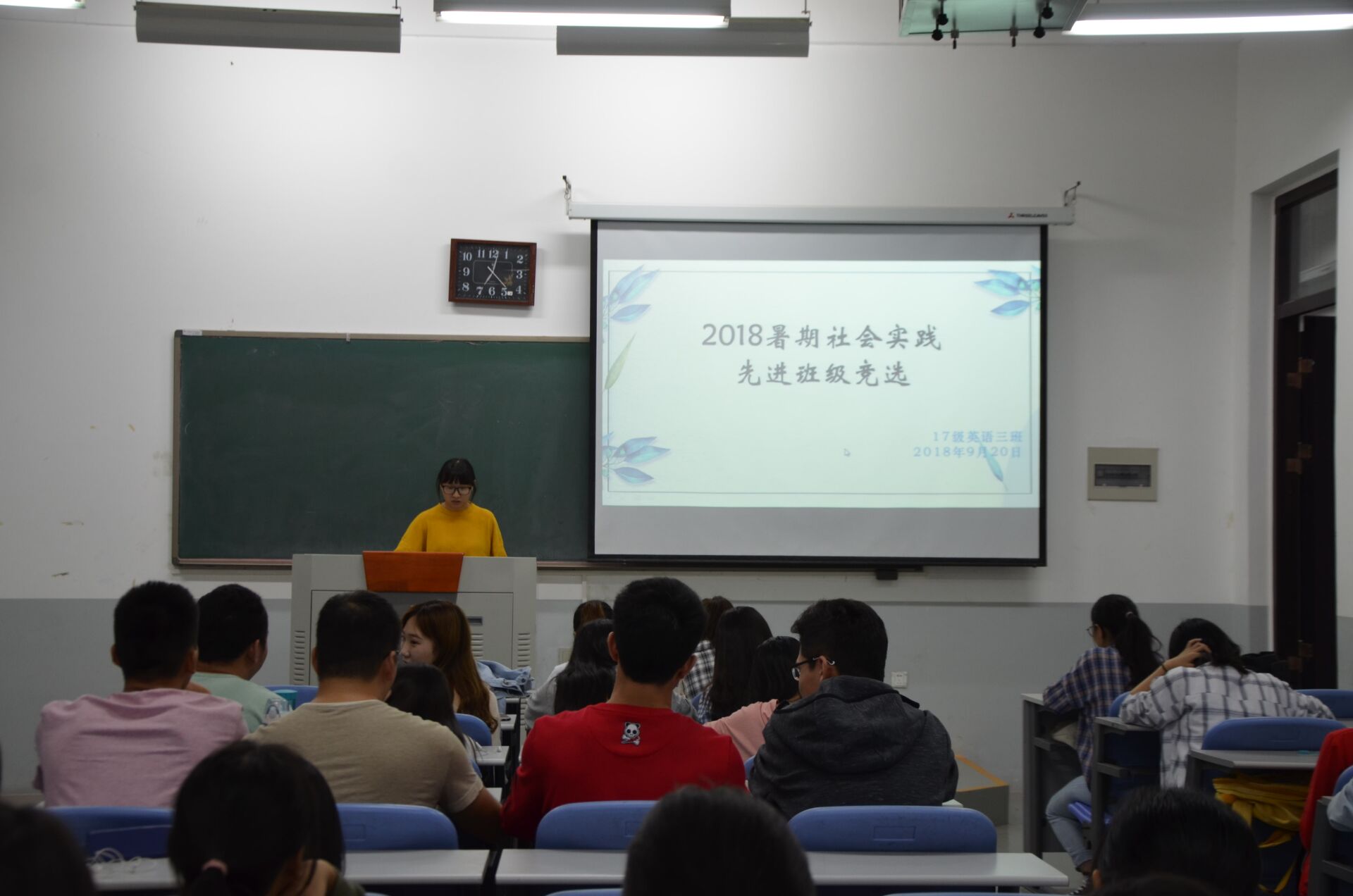 本网讯(审稿:王颖 供稿:饶芝玉)为祝贺暑期社会实践活动的顺利开展,并对实践过程中的优秀班级进行表彰,Bet365网址 于9月21日晚7点在龙子湖校区繁塔楼C107教室举办暑期社会实践先进班级评选大会。