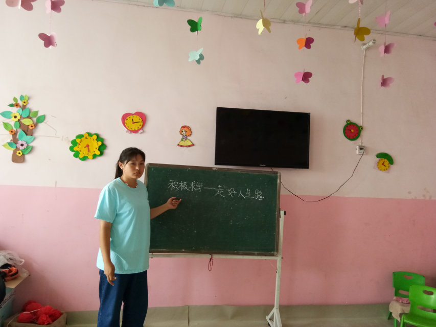 7月5日,团队正式开始教学任务。队员们明确分工,相互配合,积极备课,孩子们在课堂上表现积极,与老师相处融洽。为了严抓英语基础,队员制订了早读计划,每天早上都会让学生背诵讲过的知识点,并逐一提问。美术课上,老师为学生们讲解绘画技巧,带领他们用画笔描绘出缤纷世界。音乐课上,孩子们大声歌唱,跟着音乐老师遨游在音乐的海洋里。