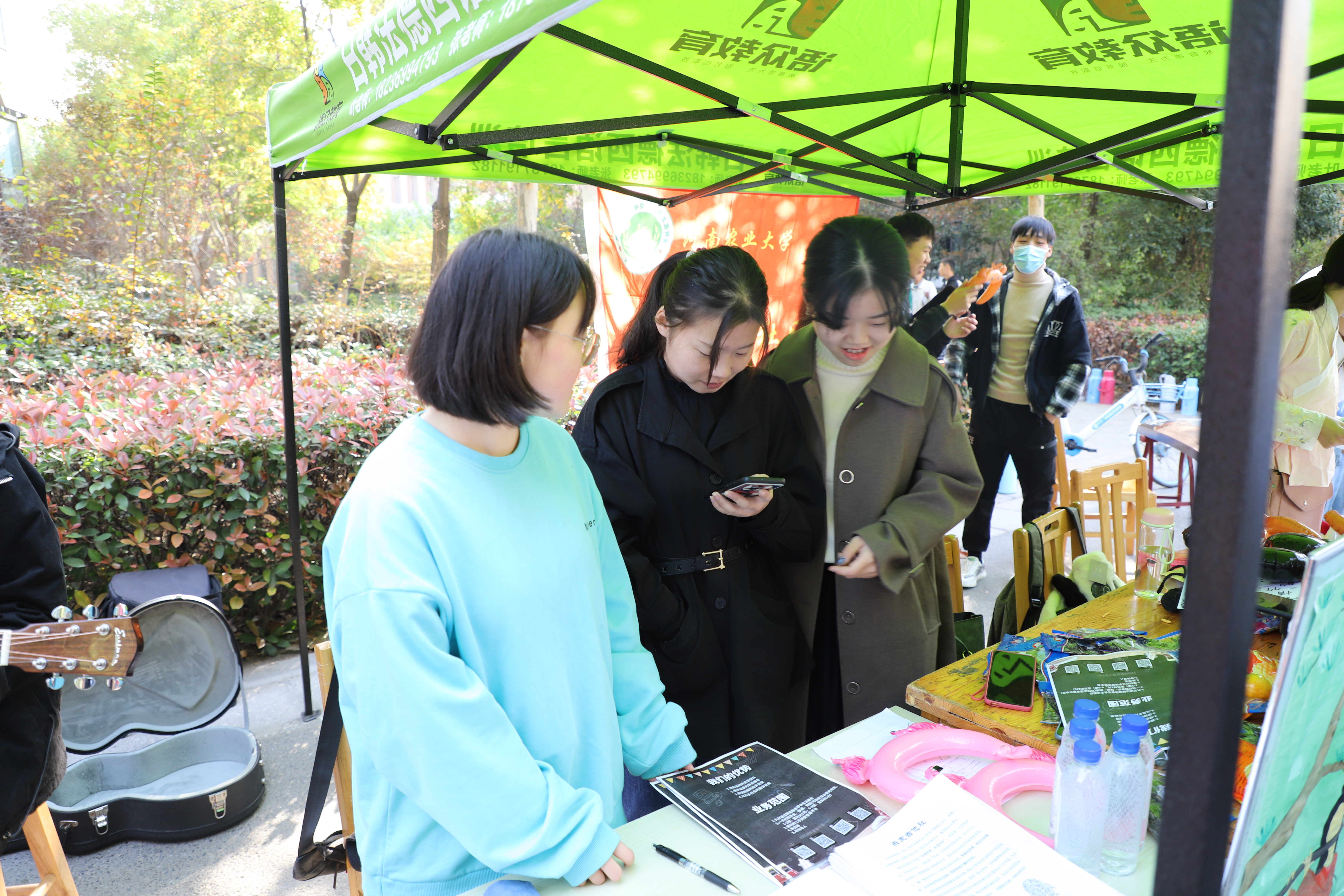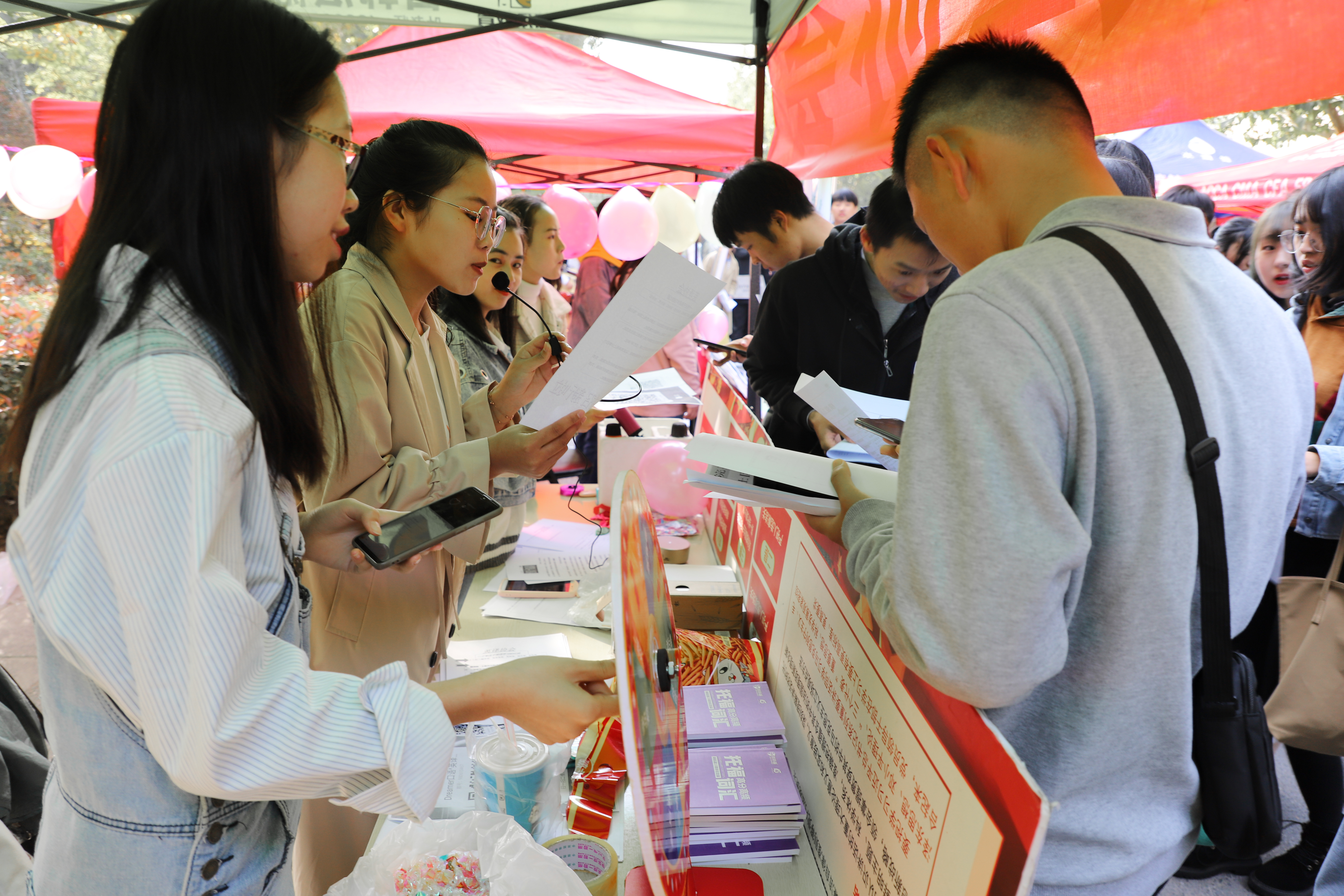 本网讯(审稿:李沛 供稿:王莉)为丰富学生的校园文化生活,展现其朝气蓬勃、积极向上的青春风采,10月24日,“百团大战”社团招新活动在龙子湖校区宿舍区主干道上如火如荼的进行着。其中隶属于Bet365中文网址 的四大社团—英译协会、微光公益协会、横溢方舟社、G调音乐社在社团招新中尽显风采。