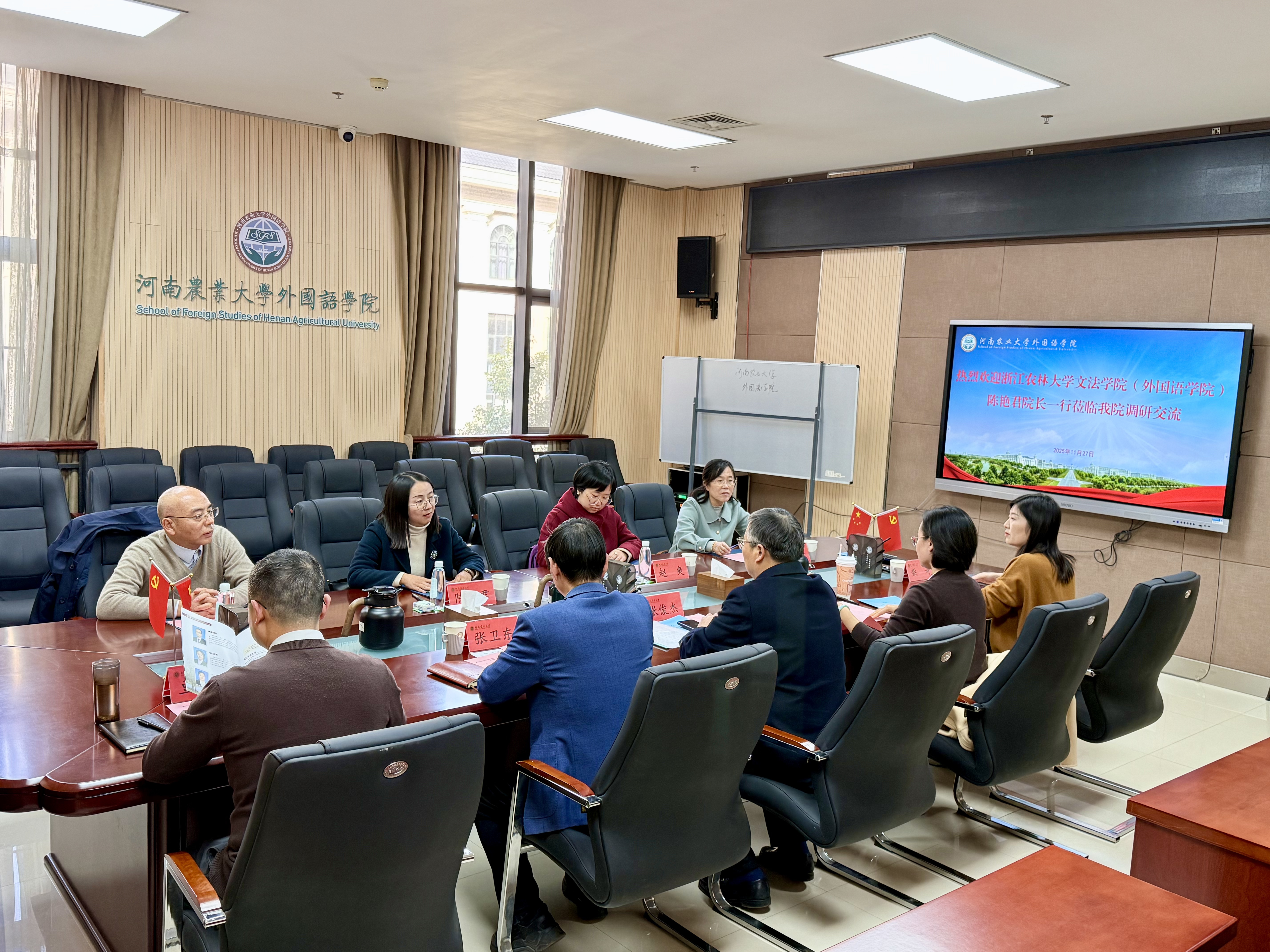 本网讯(审稿:张俊杰 供稿:薛杰)11月27日,浙江农林大学文法Bet365网址 (Bet365网址 )副院长陈艳君一行莅临Bet365中文网址 ,开展调研交流活动。Bet365中文网址 院长张俊杰携班子成员、系部主任及教师代表参会,会议由副院长张卫东主持。