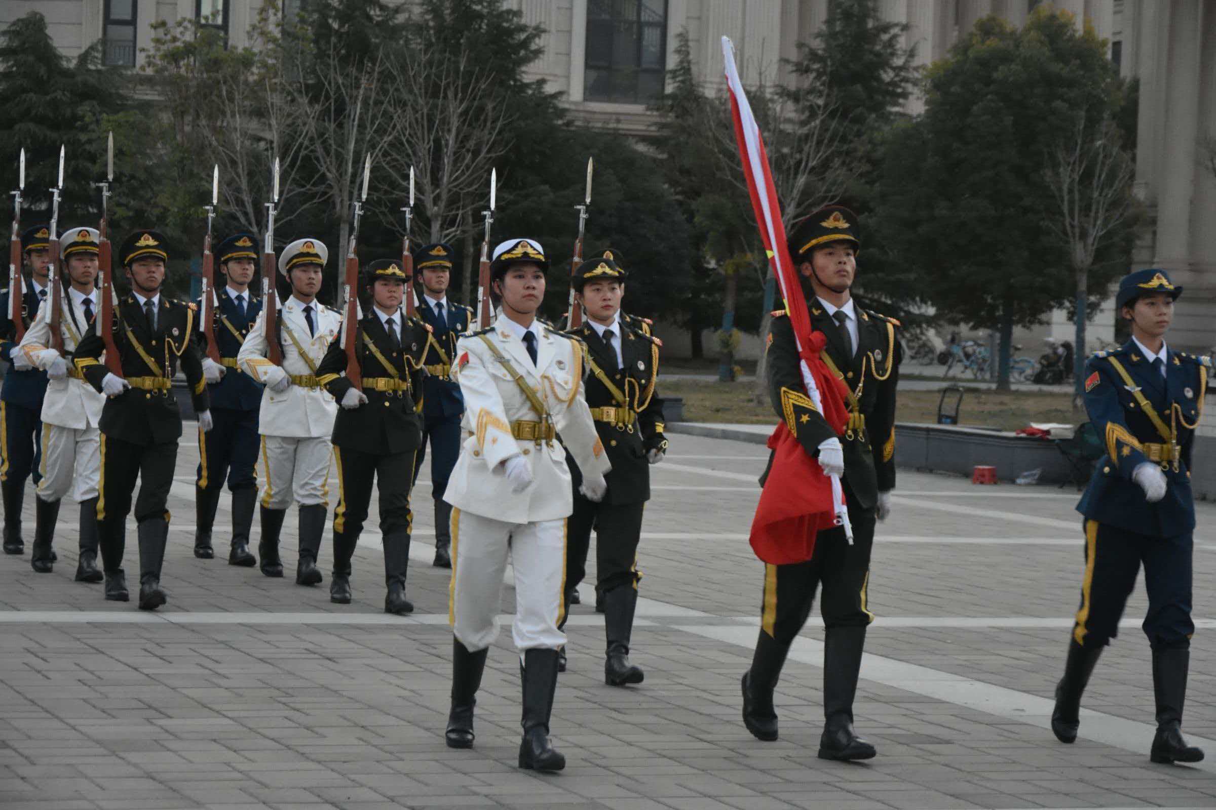 教师代表及龙子湖校区所有研究生、本科生参加升国旗仪式。仪式由院长张俊杰主持。