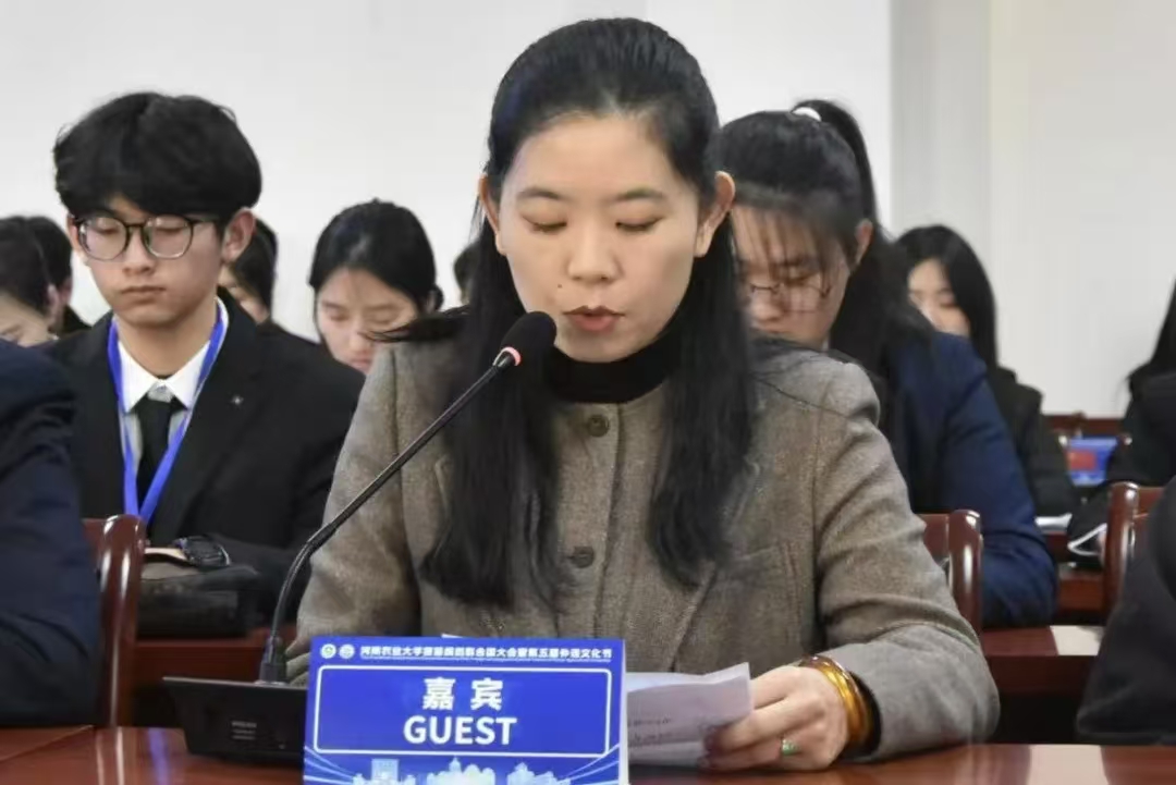 翻译系徐思园代表大会组委会与策划团队致谢,希望代表们以开放理性态度参与磋商,在多边外交实践中体会求同存异的智慧,为全球农业发展相关议题提出创新性与可行性方案。
