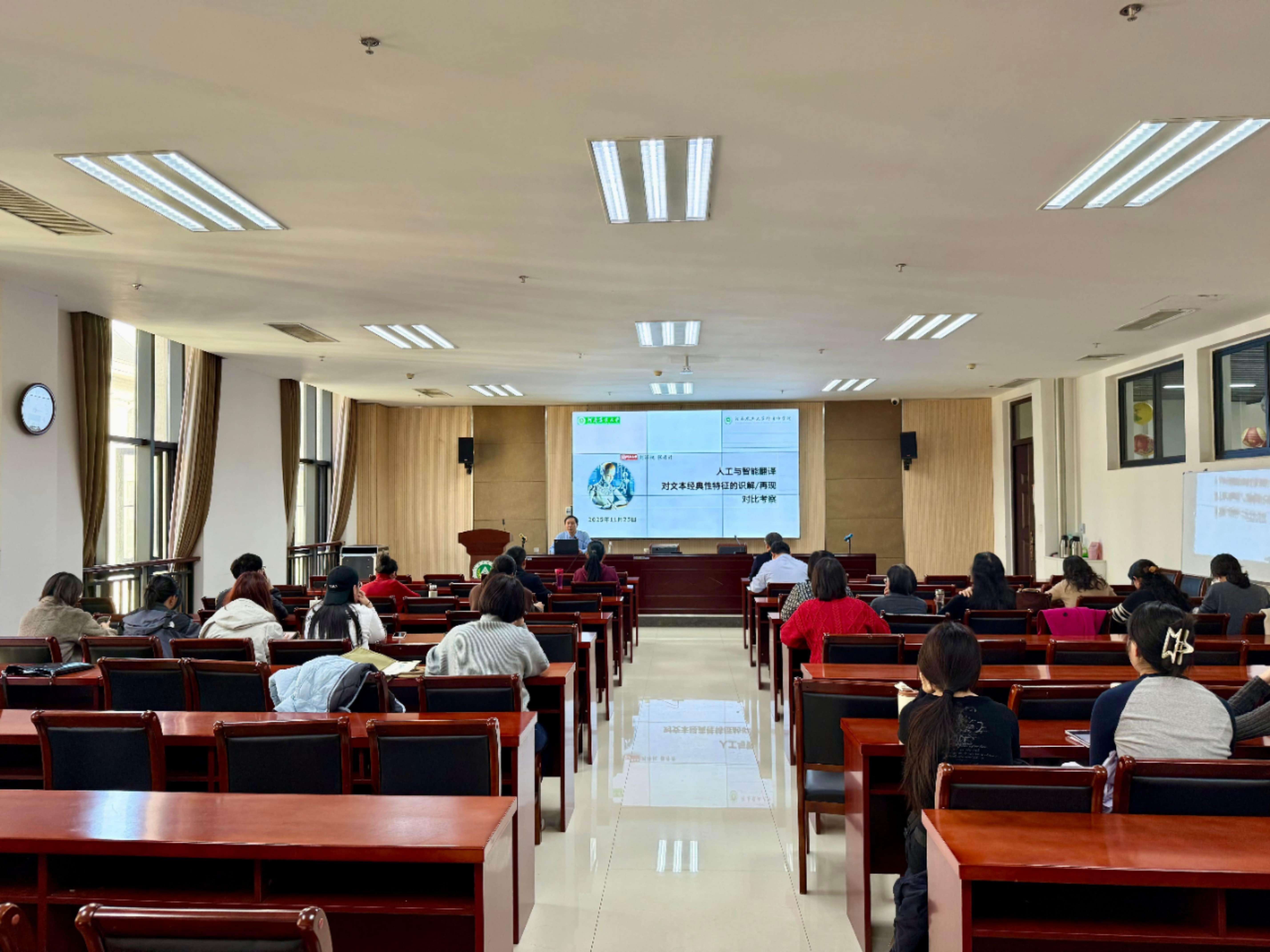 本网讯(审稿:吴玲;供稿:马孝幸;摄影:黄彪)11月25日,河南大学二级教授、博士生导师刘泽权应邀做客Bet365网址 第88期励学大讲堂,分别做了题为“人工与智能翻译对文本经典性特征的识解呈现对比考察”和“国家社科基金重点项目‘两岸三地百年女性文学翻译史论’申报论证实例分享”两场报告会。报告会由院长张俊杰教授主持,Bet365网址 骨干教师和研究生代表参加了此次报告会。