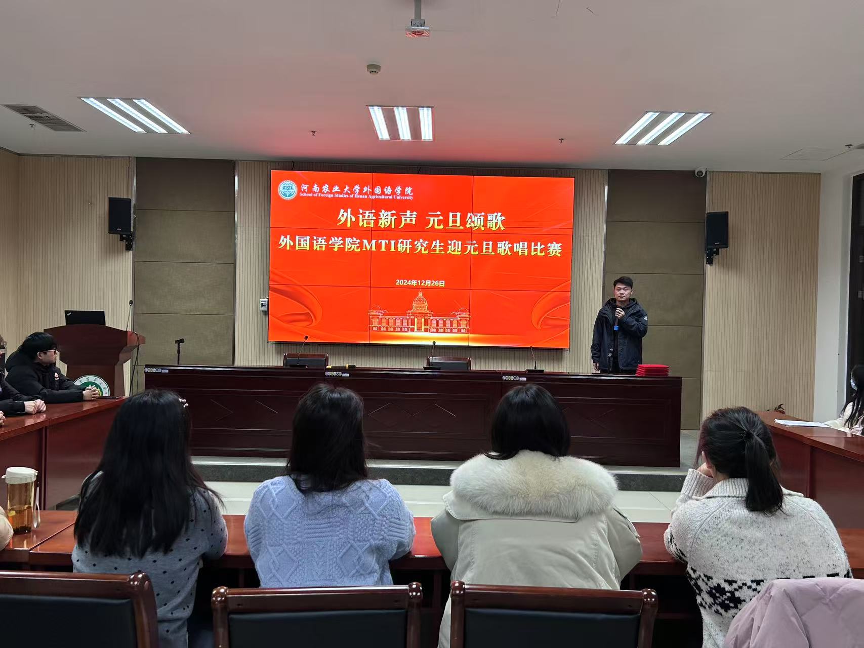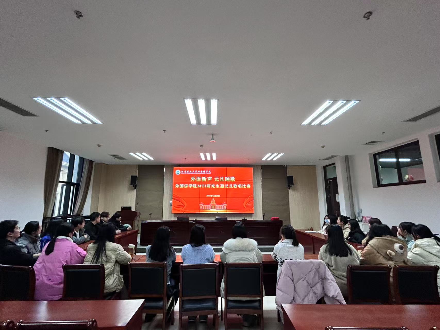 本网讯(审稿:杨鑫 供稿:薛杰)祥龙贺瑞辞旧岁,金蛇欢歌迎新年。值此元旦佳节来临之际,为进一步丰富校园文化生活,营造热烈浓厚的节日氛围,12月26日下午,Bet365网址 于繁塔楼A324成功举办“外语新声,元旦颂歌”研究生歌唱比赛。研究生辅导员薛杰和Bet365网址 全体MTI研究生参加本次活动。