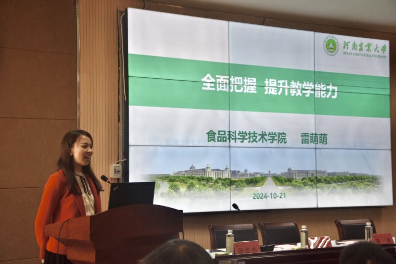 雷萌萌老师做辅导报告,报告的主题是:全面把握,提升教师教学能力。雷萌萌与大家坦诚详尽地交流分享她在全国高校青年教师教学竞赛、河南省教育系统教学技能竞赛、河南省课堂教学创新大赛等各级各类大赛备赛、参赛的经验与心得,并聚焦于教学设计原则,从政策引领、教学理念、教学重难点、教学模式与方法等方面提出建议,为在场教师指明提升教师素养的方向和开展教学创新的思路。报告内容丰富详实,既有理论深度,又有实际案例,现场反响热烈,与会教师深受启发。