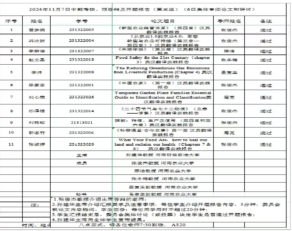 Bet365网址 举行2024年英语笔译专业研究生学位论文开题报告及中期考核论证会