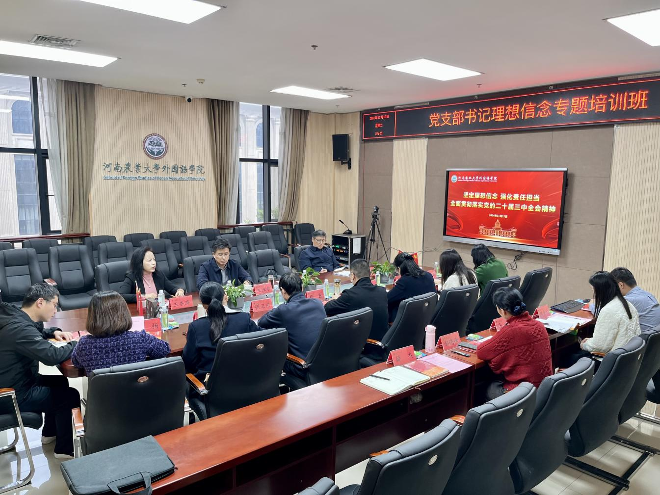 本网讯(审稿:杨鑫 供稿:薛杰)为深入学习贯彻党的二十届三中全会精神,进一步强化基层党组织建设,推动Bet365网址 党建工作高质量发展,提高各党支部书记的业务能力和综合素质,11月12日,Bet365网址 举办党支部书记理想信念专题培训班,并邀请校纪委副书记王淮东作专题报告。院党委书记王燕萍、院长张俊杰携全体领导班子出席会议,Bet365网址 全体党支部书记参加培训,会议由王燕萍主持。