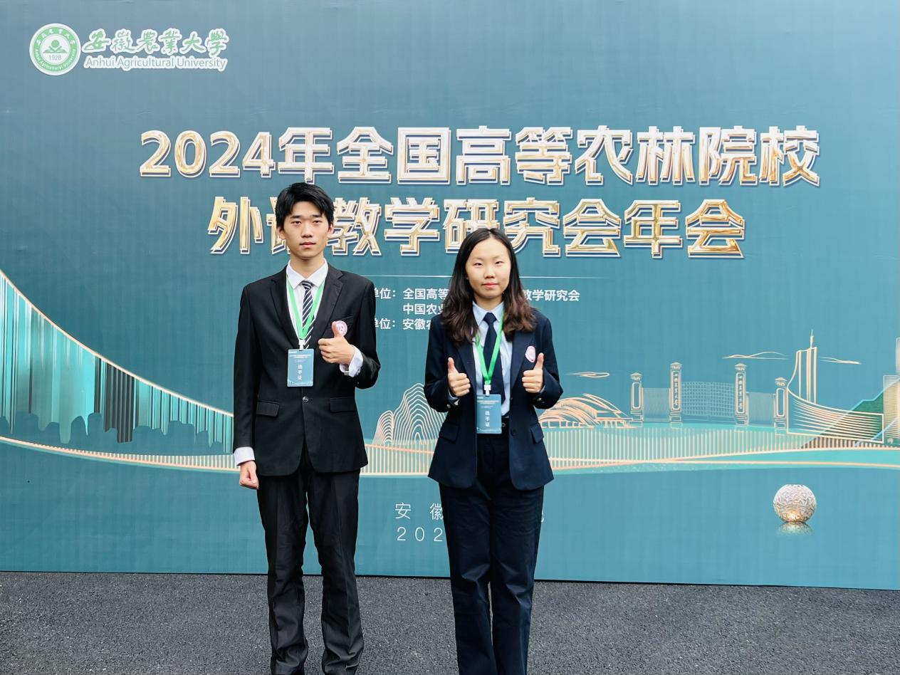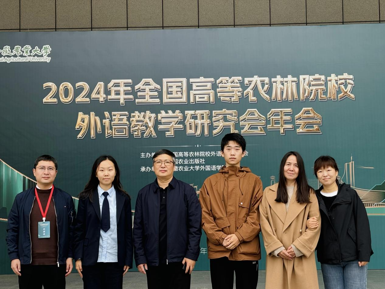 本网讯(审稿:吴 玲 供稿:豆 涛)11月8日至10日,由中国农业出版社、全国高等农林院校外语教学研究会联合主办、安徽农业大学承办的2024年全国高等农林院校外语教学研究会年会暨第三届全国高等农林院校大学生英语演讲大赛在安徽合肥成功举办,Bet365网址 院长张俊杰带队参加。Bet365网址 2024级翻译专业张艺翔和林Bet365网址 2022级经济林专业马驰骋代表我校参赛并在比赛中发挥出色,分别获得二等奖和优秀奖,豆涛和周亚楠两位老师获优秀指导教师奖。