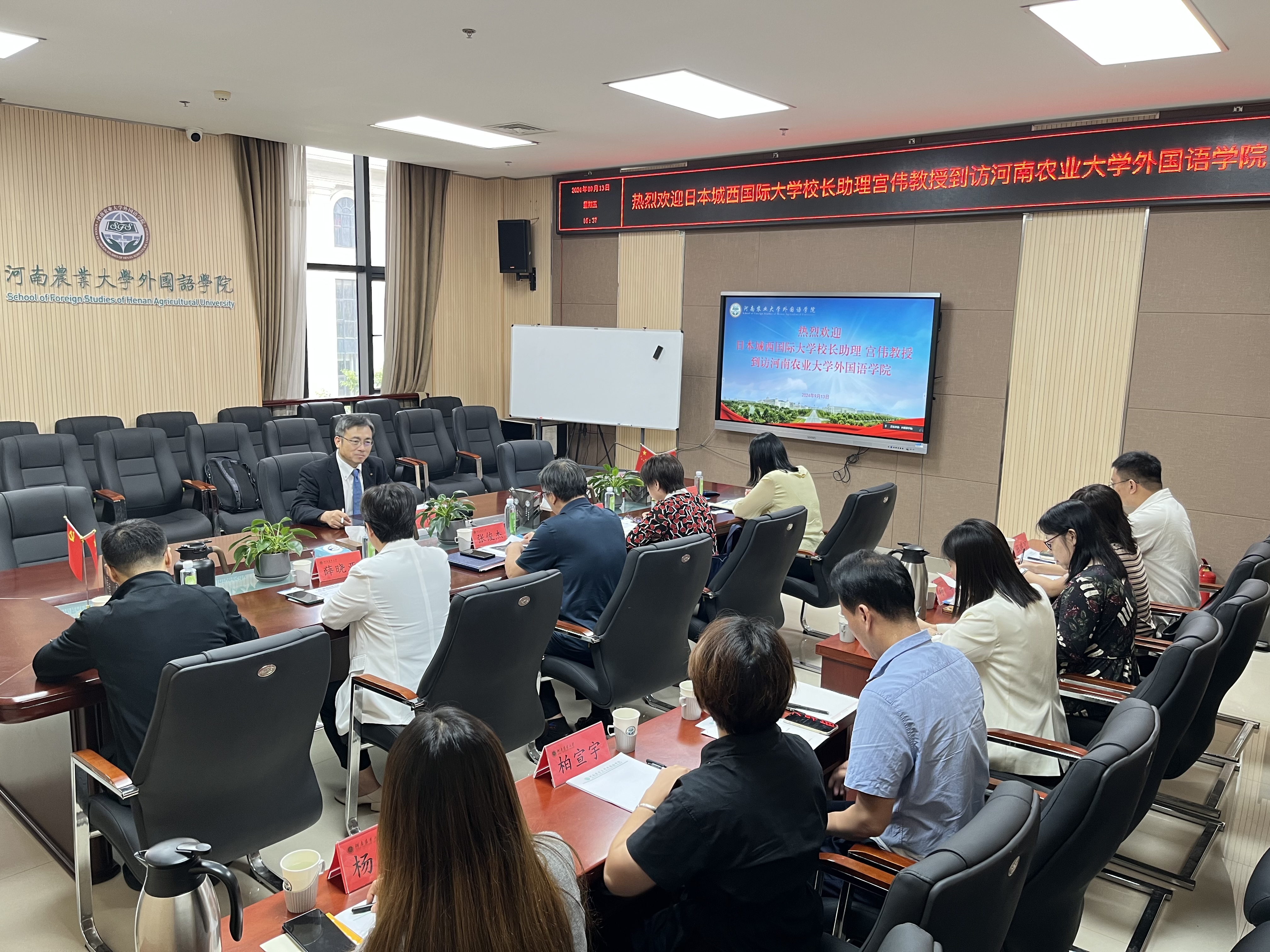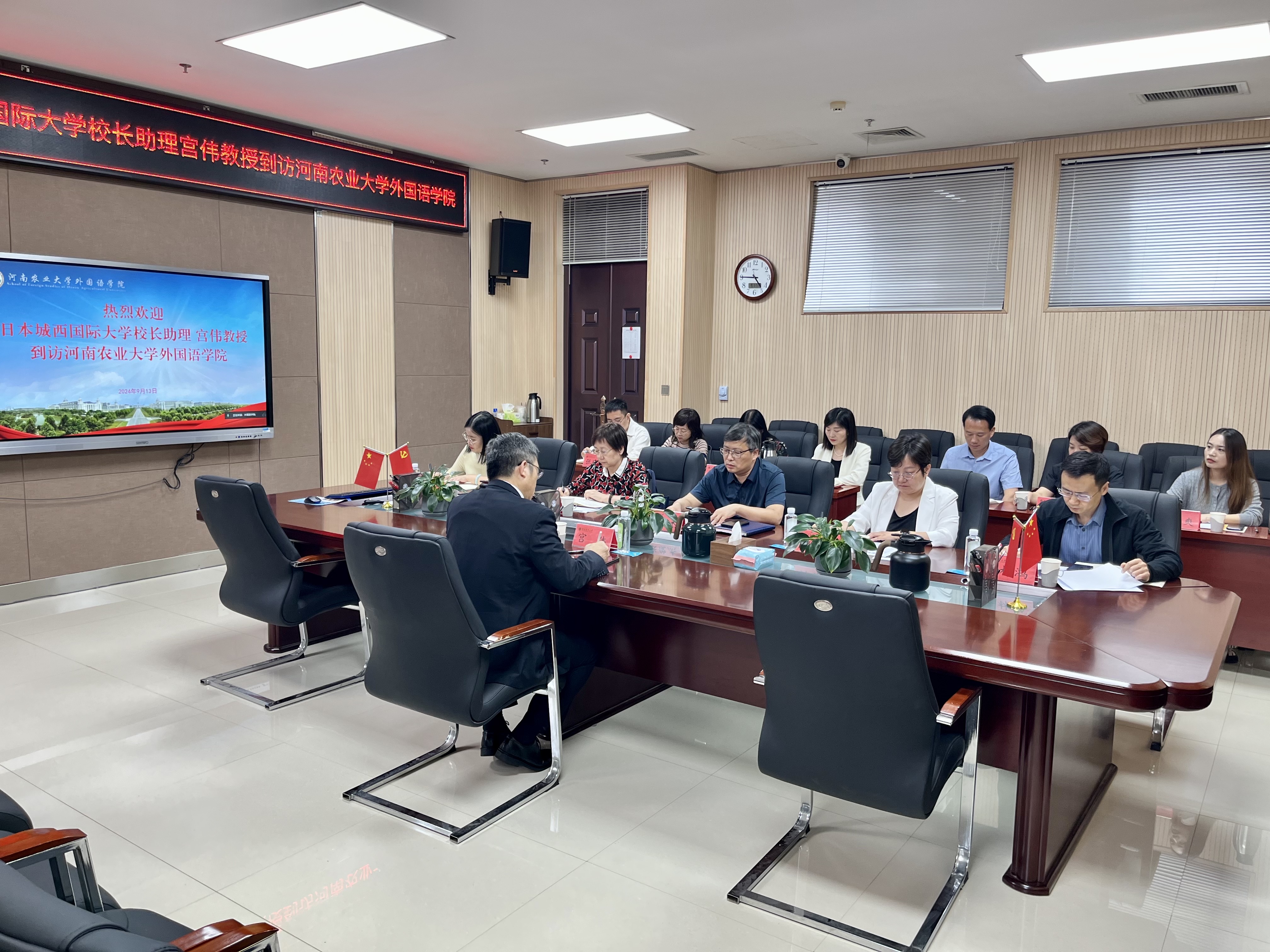 本网讯(审稿:吴玲 供稿:余亮 摄影:黄彪)9月13日下午,日本城西国际大学校长助理宫伟教授来Bet365中文网址 座谈。河南农业大学教务处副处长薛晓亚、国际交流合作处副处长曾效葵、国际教育Bet365网址 副院长邢林鸿、Bet365网址 院长张俊杰、副院长吴玲,以及日语系负责人和教师代表参加了此次会谈。会议由张俊杰主持。