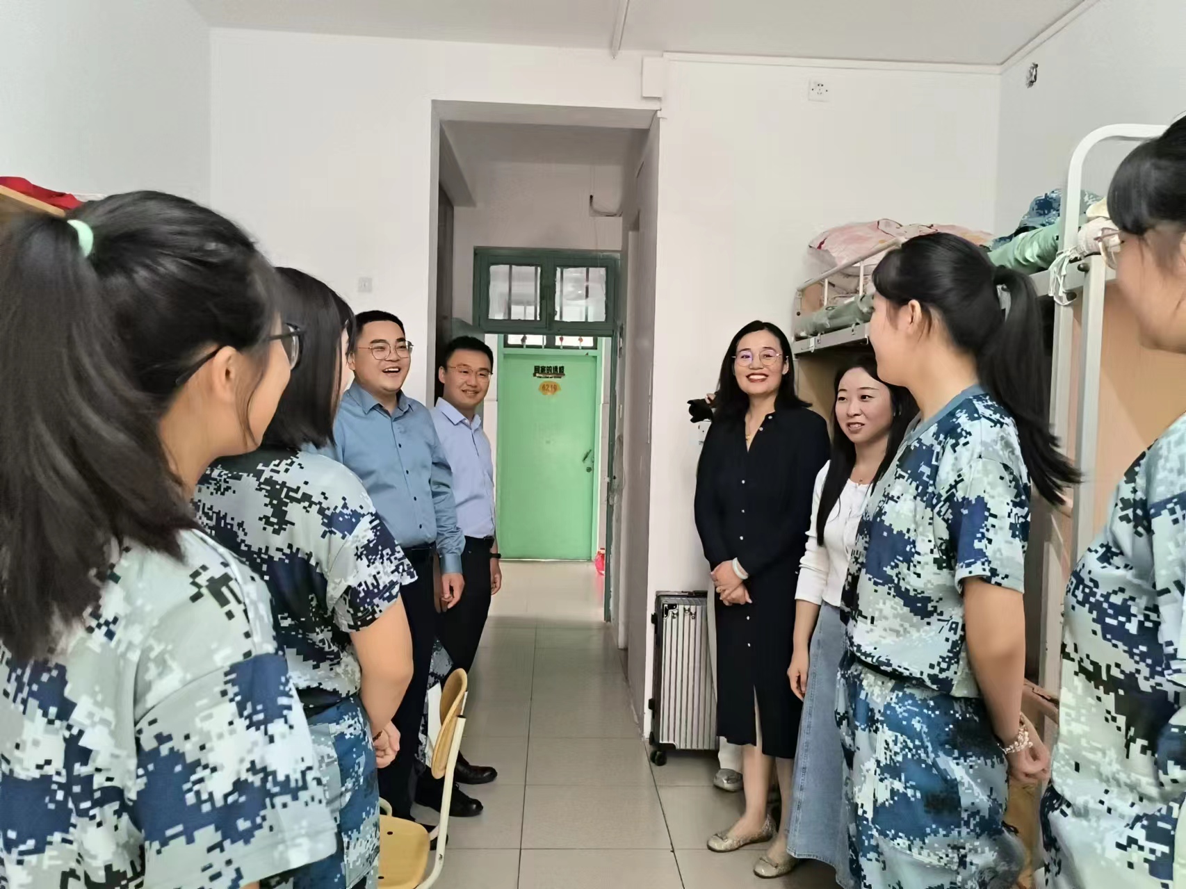 在桃李园学生公寓,院领导走进一间间宿舍,与新生亲切交谈,全面了解他们军训、生活情况,叮嘱同学们强化安全防范意识,确保自身安全。院领导还勉励大家团结互助、尽快融入集体,实现大学学习与生活的良好开端,为成长成才打下坚实的基础。