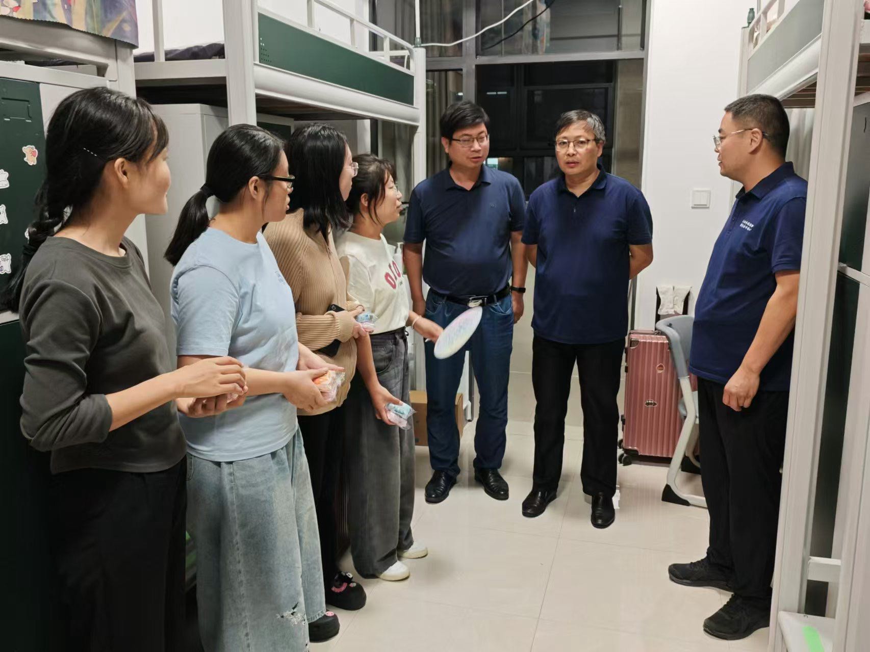 在研究生宿舍,张俊杰与研究生们进行了亲切交谈,详细了解了新生入学后住宿、日常生活状况,倾听他们的需求与建议,勉励大家做好规划,刻苦学习、开拓创新,尽快融入校园生活。