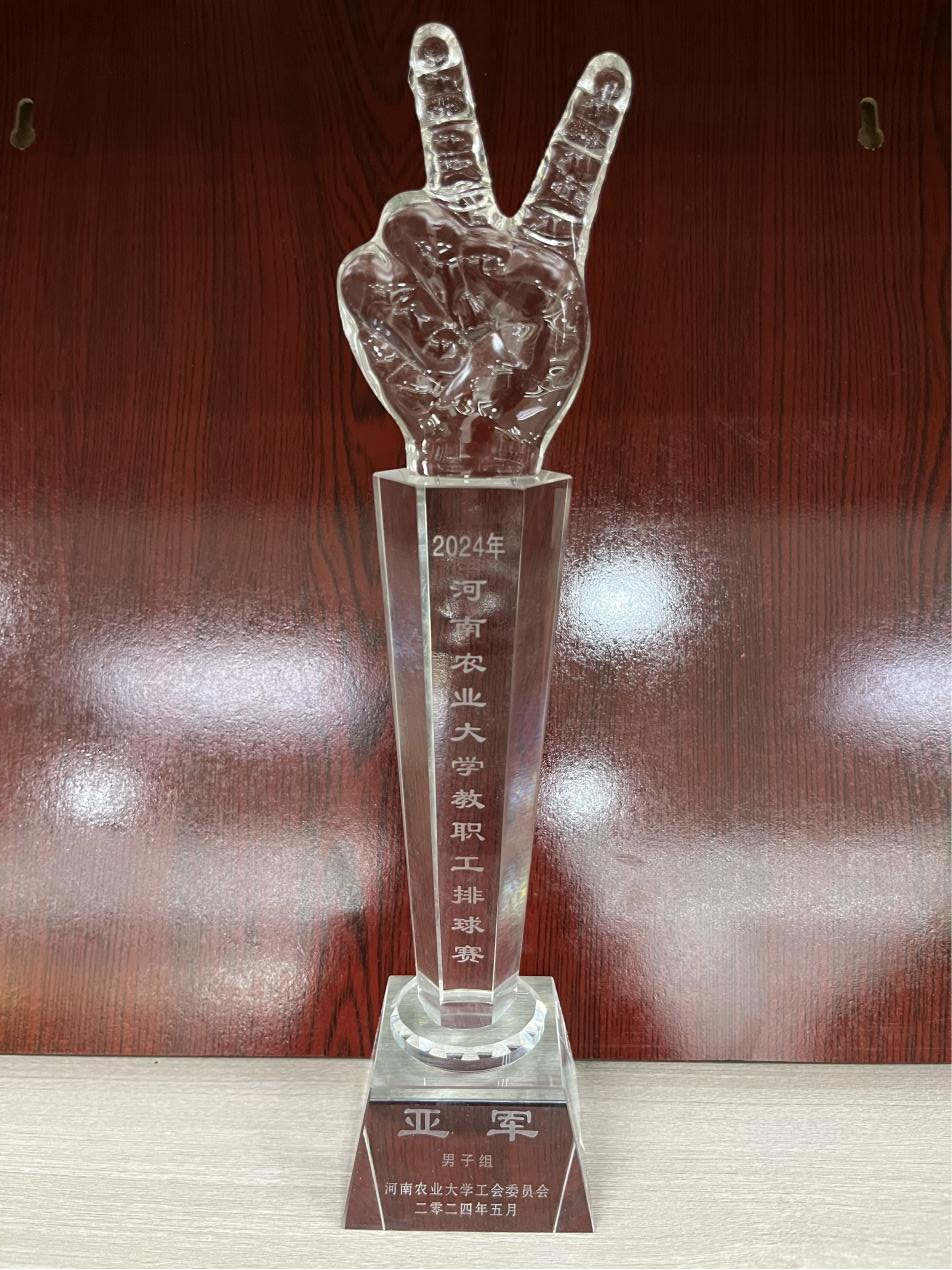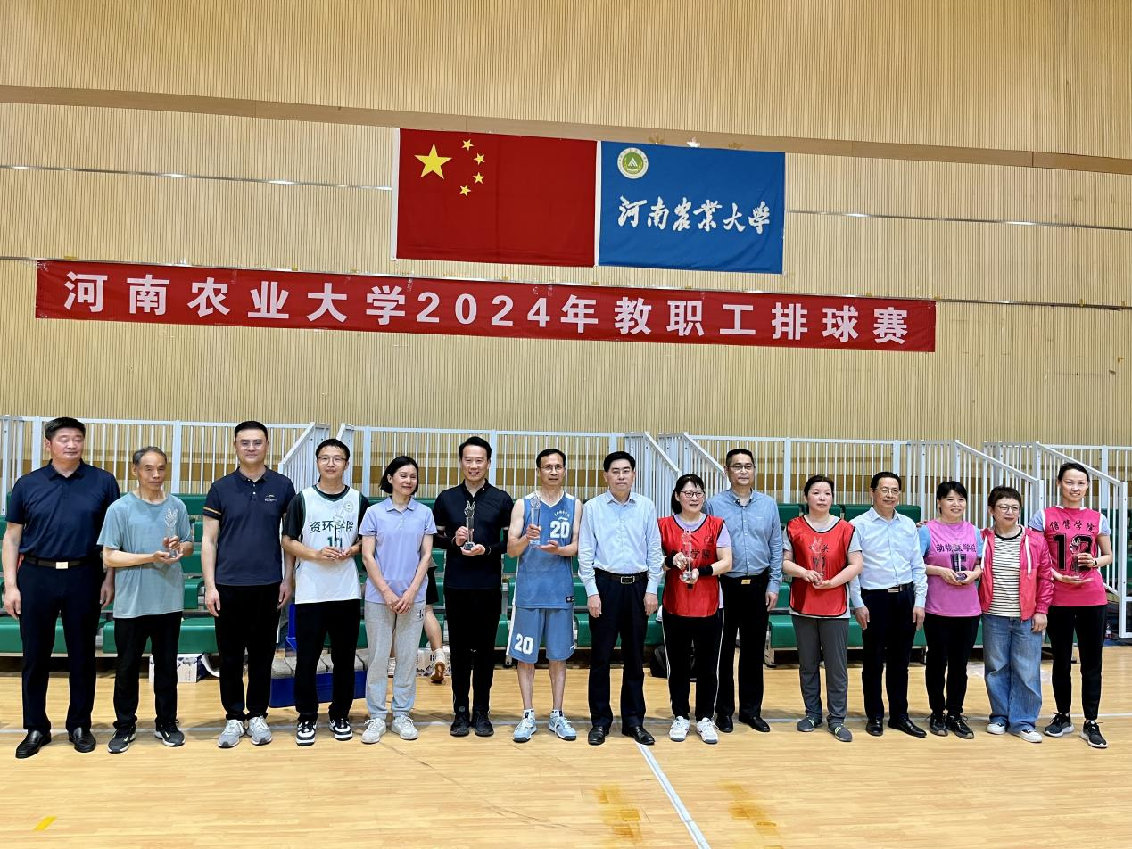 本网讯(审稿:王燕萍 供稿:郝晓峰)2024年5月9日,全校教职工排球比赛圆满落幕,外语国教教职工男子排球联队经过8场比赛的激烈角逐,斩获亚军,副校长郭战伟为亚军队颁发了奖杯。本次比赛在河南农业大学龙子湖校区举行,历时22天、全校25个代表队参加。