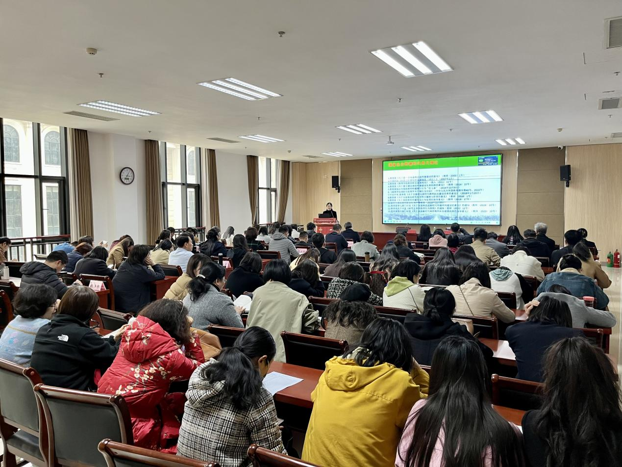 李红娟以《大力弘扬教育家精神 努力做“经师”和“人师”的统一者》为题,从习近平总书记关于师德师风建设的重要论述、师德师风建设主要内容、做“经师”和“人师”的统一者等三个方面进行了阐述,结合违反教师职业行为十项准则典型案例,勉励大家充分认识师德师风建设的重要性,廉洁从教,依法执教,自觉遵守师德规范,守住师德底线,以实际行动落实立德树人根本任务,切实担负为党育人、为国育才光荣使命。