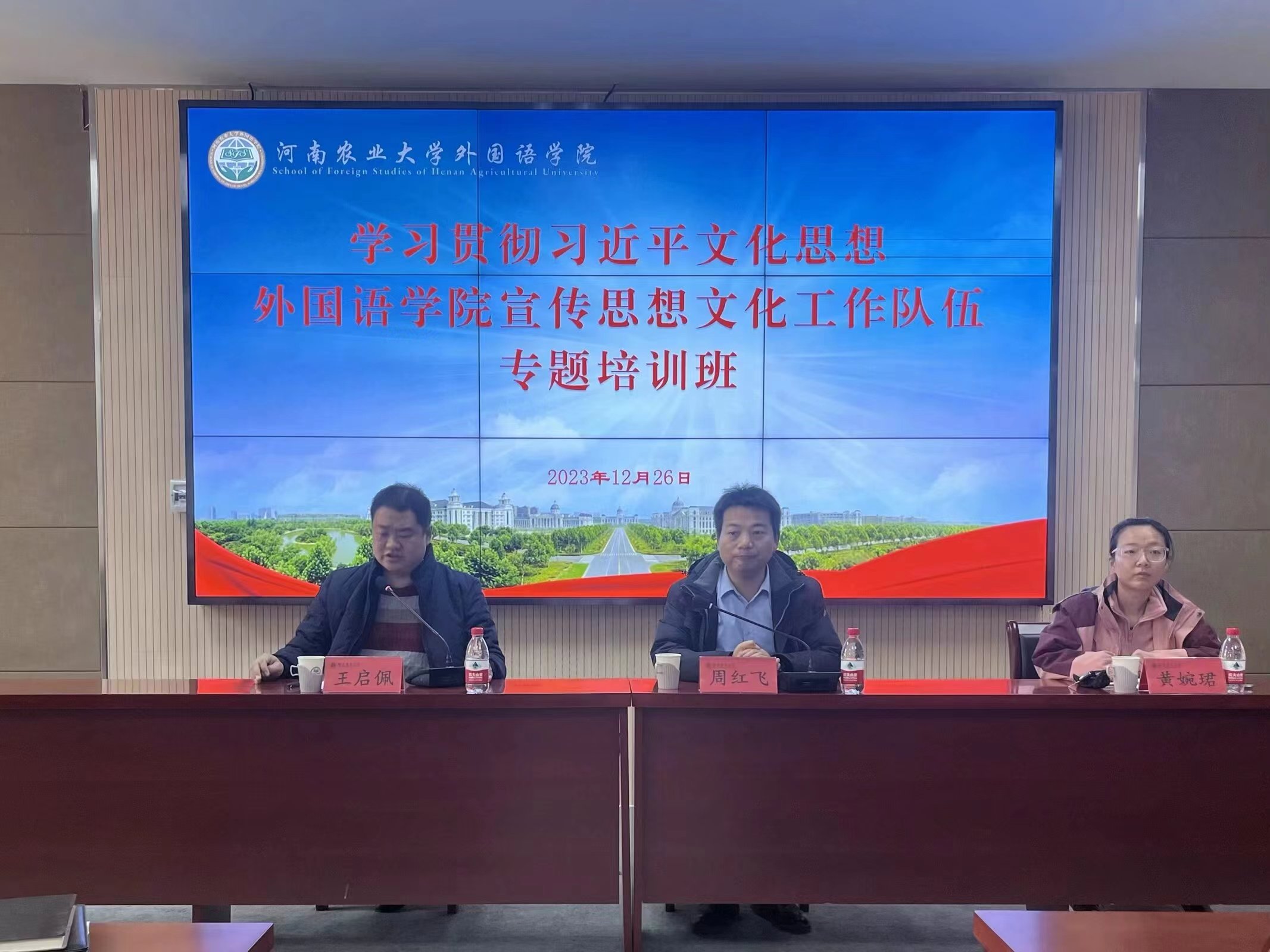 本次培训班是学习贯彻习近平文化思想的重要举措,下一步,Bet365网址 将进一步坚定文化自信,贯彻落实好全国、全省宣传思想文化工作会议精神,全员动手做好意识形态工作,进一步加强中国国际传播能力,积极创新对外话语体系,坚持主动发声,讲好中国故事,讲好河南故事,讲好农大故事。