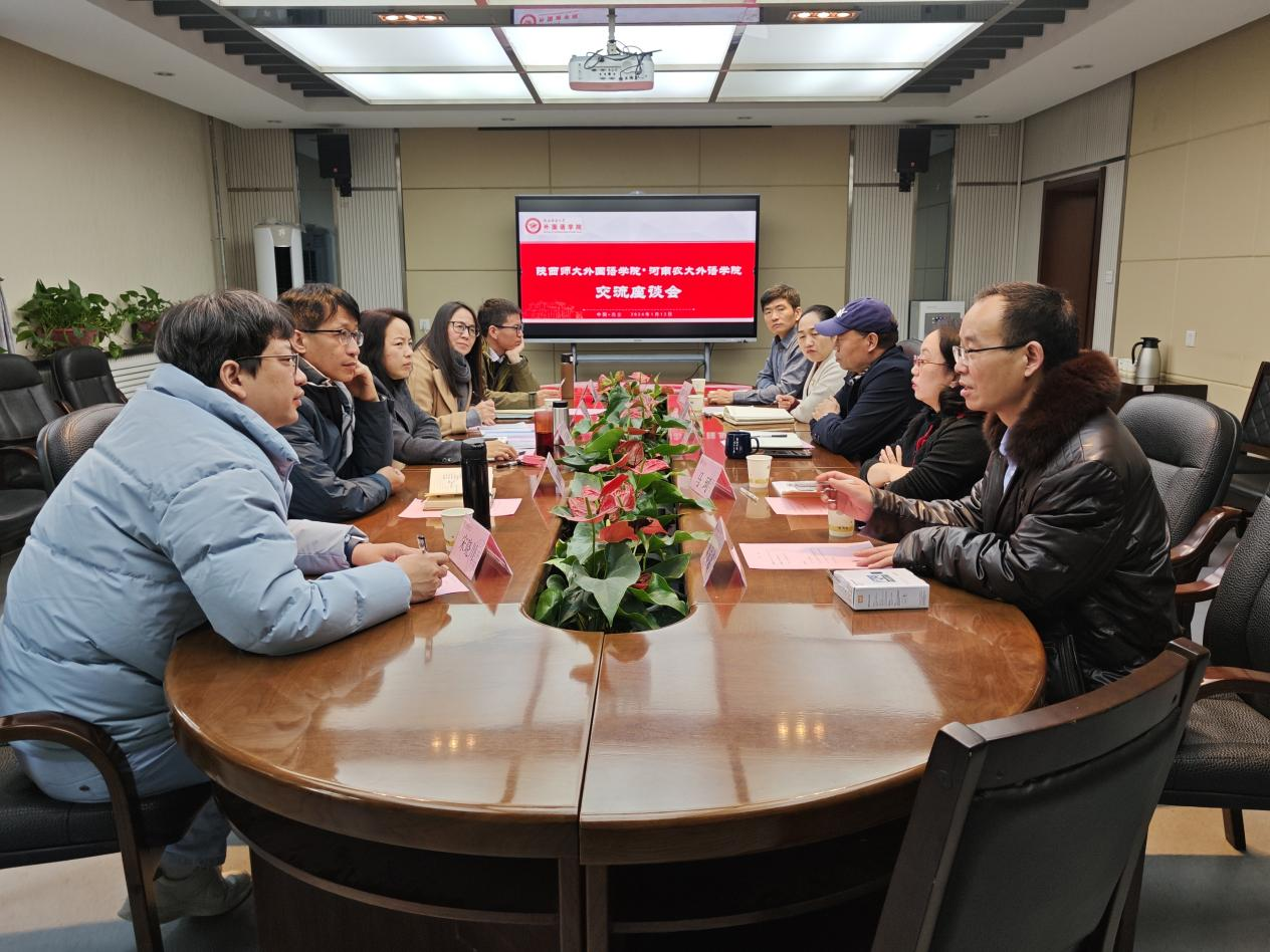 本网讯(审稿:王燕萍 供稿:宋荣超)1月12日上午,Bet365网址 党委书记王燕萍携大学英语教学部、研究生英语教学部等相关负责同志赴陕西师范大学Bet365网址 调研交流。陕西师范大学Bet365网址 院长刘全国,副院长孙坚,党委副书记鲁燕,语音中心、公共外语教学部等相关负责人参加活动,会议由鲁燕主持。