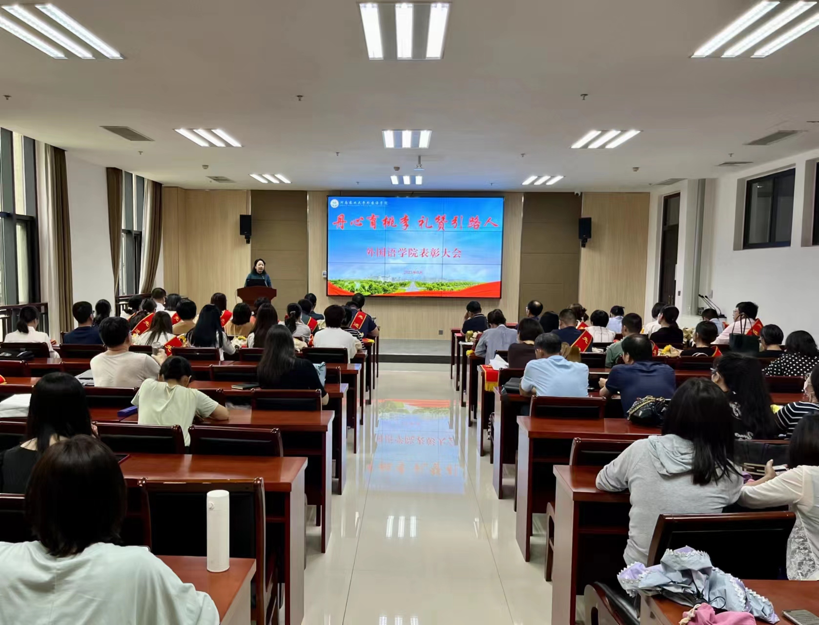 召开以“丹心育桃李,礼赞引路人”为主题的教师表彰大会。院党委书记王燕萍、院长张俊杰携领导班子成员出席会议,会议由院党委副书记王启佩主持。