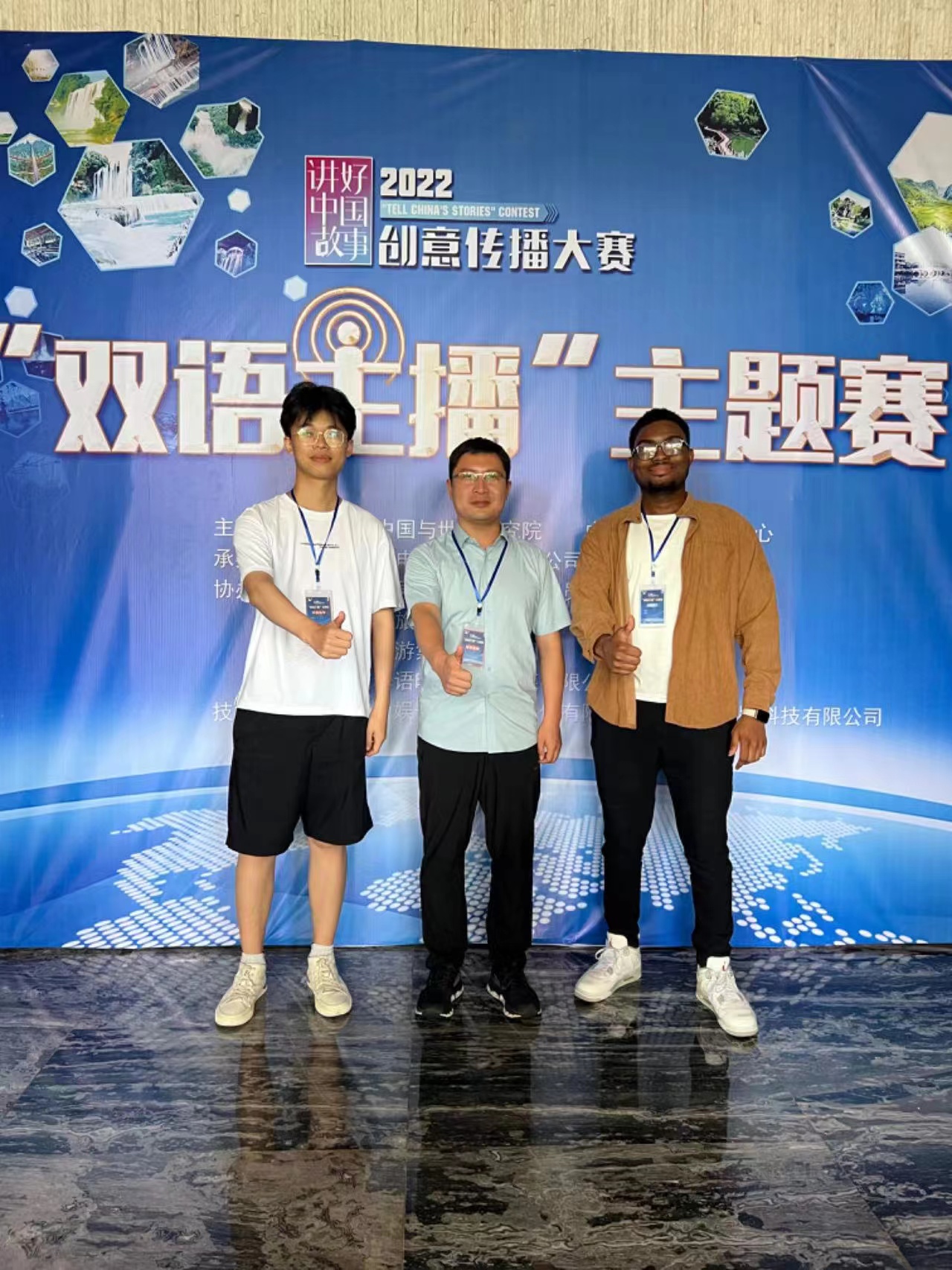 本网讯(审稿:王启佩 供稿:豆涛 冯超)9月15日至9月17日,2022“讲好中国故事”创意传播大赛双语主播主题赛现场赛在贵州省安顺市黄果树旅游区顺利举行。Bet365网址 2020级翻译一班初学然以第十二届全国口译大赛河南省复赛第一名“口译之星”身份,在指导教师豆涛老师的带领下共赴赛场,在决赛中脱颖而出并斩获三等奖。