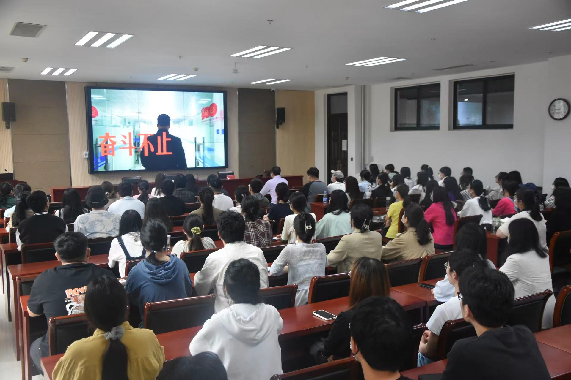 于龙子湖校区A324会议室开展2023届毕业生党员话初心活动。院党委书记王燕萍出席活动并为毕业生上专题党课,院党委副书记王启佩、院团委书记冯超及全体毕业生党员参加活动。