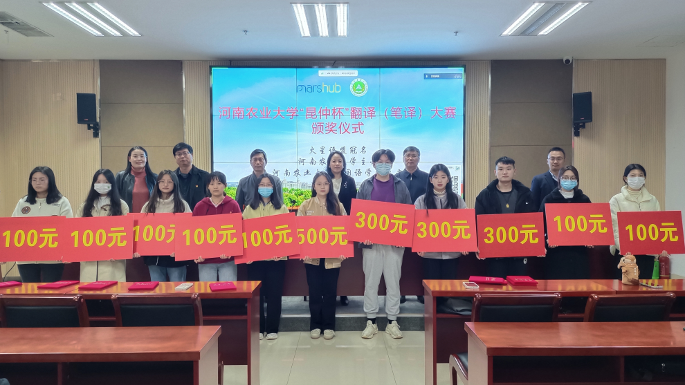 本网讯(审稿:张俊杰 供稿:吴玲)为营造浓厚校园文化氛围,调动广大翻译爱好者的积极性,进一步增强同学们讲好中国故事、传播中华文化的能力,4月4日下午,Bet365网址 于繁塔楼A324举办了“昆仲杯”翻译(笔译)大赛颁奖仪式。Bet365网址 党委书记王燕萍、院长张俊杰、副院长张卫东、科研秘书、教学秘书及团委相关负责教师出席了此次活动。