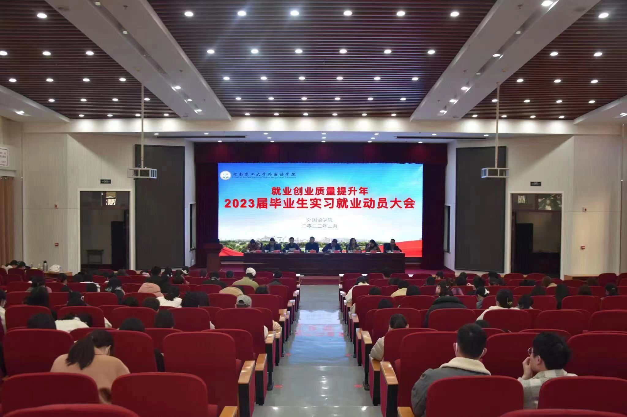 在龙子湖校区繁塔楼大教室1召开了2023届毕业生实习动员大会。会议由院党委副书记王启佩主持,院长张俊杰携院领导班子成员、各系部室主任、毕业班辅导员和2023届全体毕业生出席了此次会议。