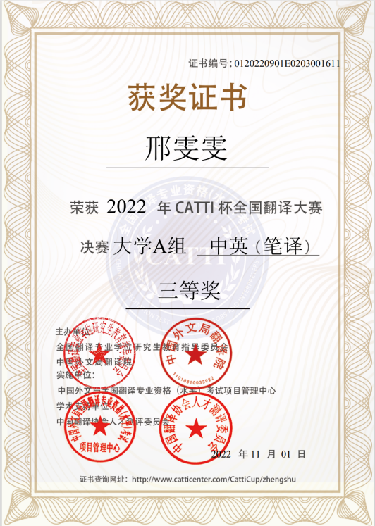 外语学子在CATTI杯全国翻译大赛中斩获佳绩