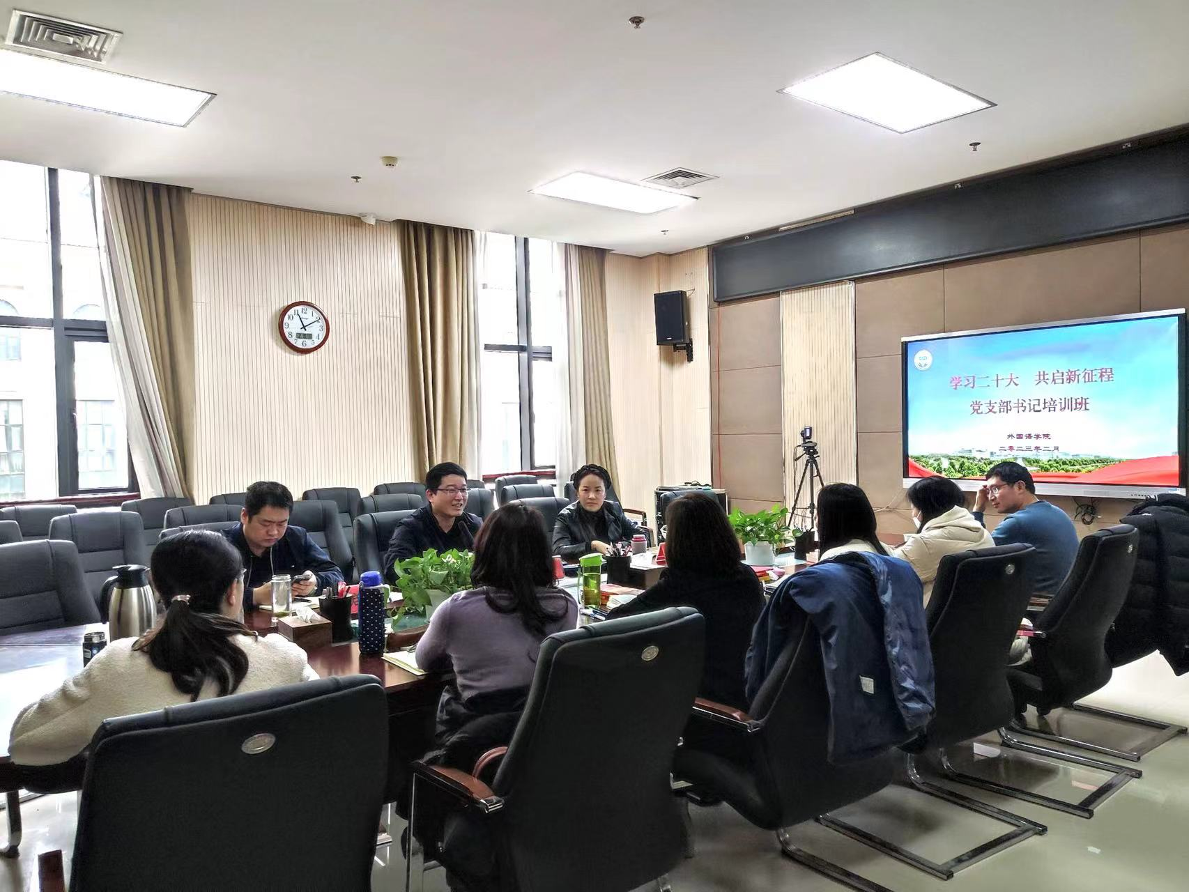 在龙子湖校区繁塔楼A320会议室举办“学习二十大 共启新征程”党支部书记培训班。院党委书记王燕萍携全体教工党支部书记和部分学生党支部书记参加培训,活动由院党委副书记王启佩主持。