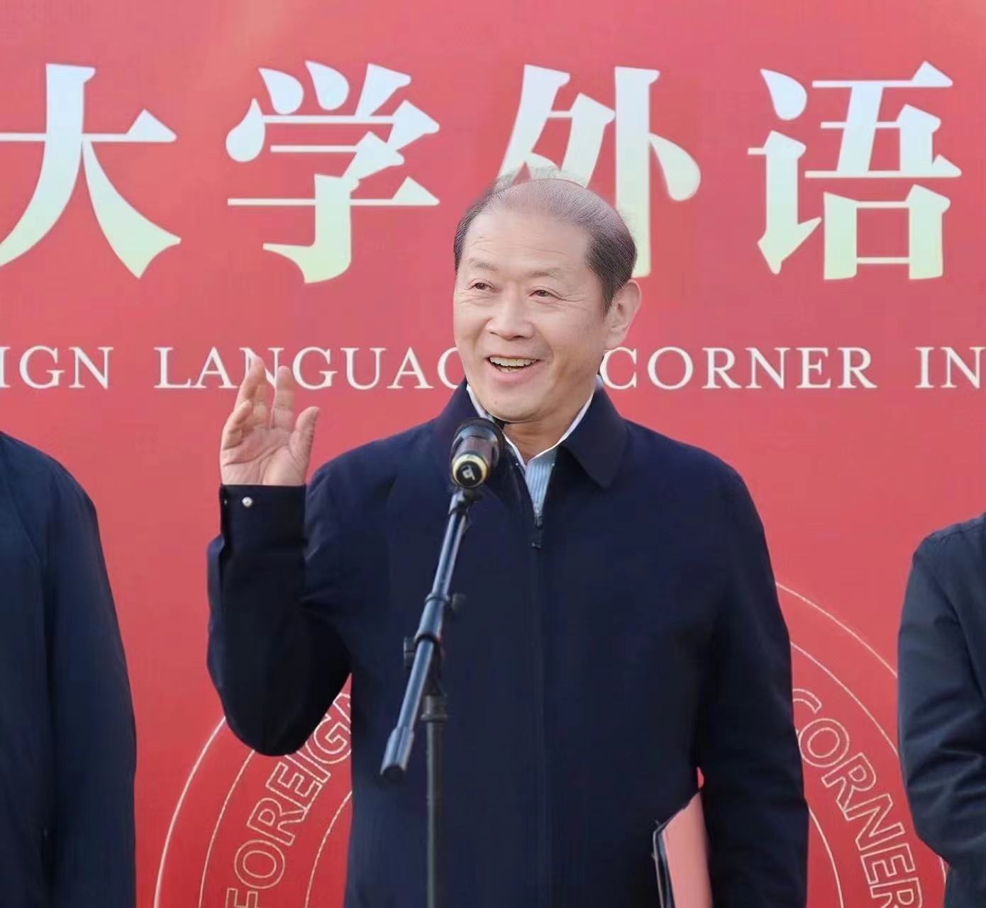 介晓磊、尚富德共同为“外语角”隆重揭幕。外语角指导教师代表和学生代表分别发言。