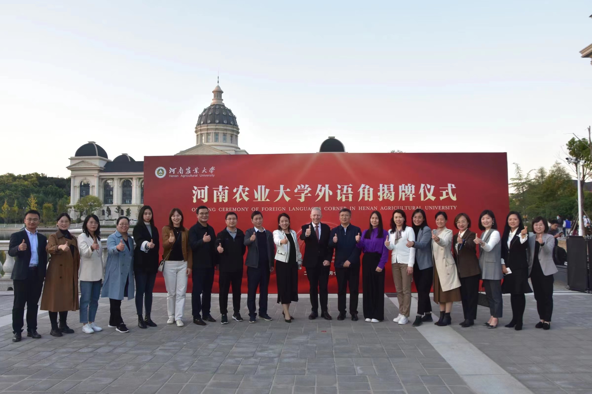 本网讯(审稿:王启佩 供稿:陈桃)10月11日下午,“河南农业大学外语角”揭牌仪式在龙子湖校区举行。校长介晓磊、副校长尚富德出席活动,党委宣传部、党委学工部、校团委、教务处、国际交流合作处、研究生院等相关职能部门负责人和外籍教师代表、Bet365网址