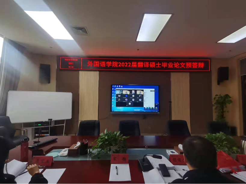 在繁塔楼A320、A324并结合线上会议形式,开展了2022届翻译硕士研究生毕业论文预答辩。此次预答辩邀请了郑州大学教授王志伟、河南师范大学教授赵文静、河南大学教授杨朝军分别担任答辩主席,全体翻译硕士研究生导师和2020级翻译硕士研究生参加预答辩,2021级研究生参加旁听。
