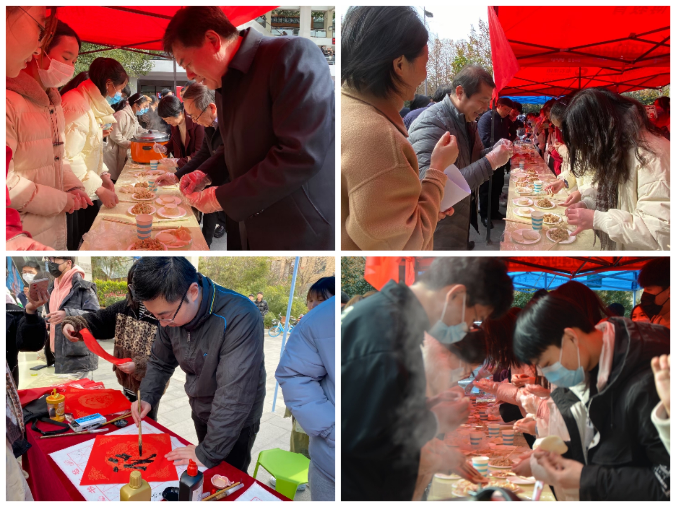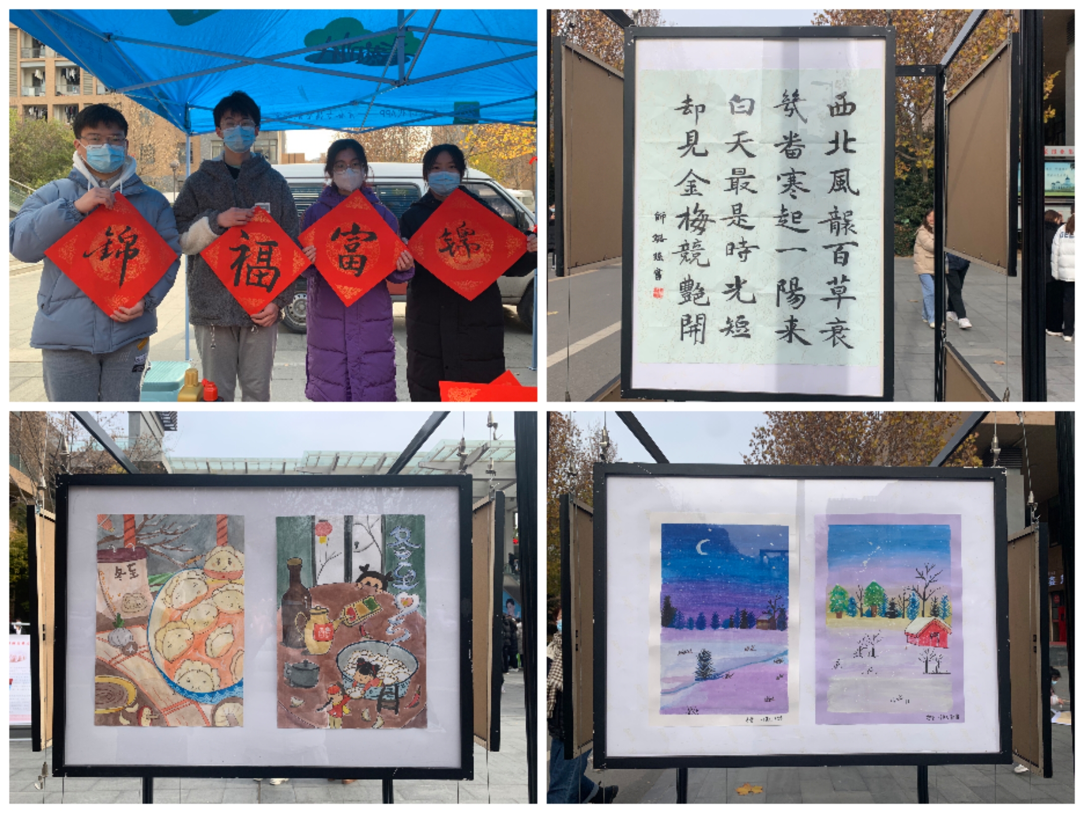 在饺子汤圆PK区,李成吾、尚富德等老师也兴致勃勃加入包饺子、包汤圆的战阵,一边与同学们交谈,一边撸起袖子加油包,还其乐融融的品尝了同学们的战利品,师生同乐的暖意沁人心脾。在艺术精品展示区,同学们制作的写意剪纸、精美书法得到了老师们的一致认可,隽永之美呼应了新时代的需求,延伸着中国优秀传统文化的丰富内涵……现场还设有民俗文化体验区、冬至“福”画展以及趣味答题等多个区域,师生们在品味中外文化差异、践悟古今传统变迁中感悟中华优秀传统文化的博大精深,进一步增强了文化自觉,坚定了文化自信,以伟大历史主动精神勇毅前行,谱写新时代的最美赞歌!