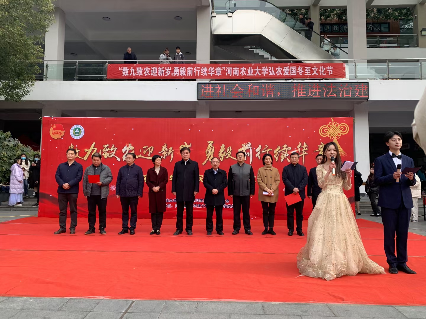 承办的河南农业大学“数九致农迎新岁,勇毅前行续华章”冬至文化节在龙子湖校区一餐厅广场隆重举行。校党委副书记、工会主席李成吾、副校长尚富德等莅临现场指导,校党委宣传部、学生工作部、研究生工作部、校工会、Bet365网址