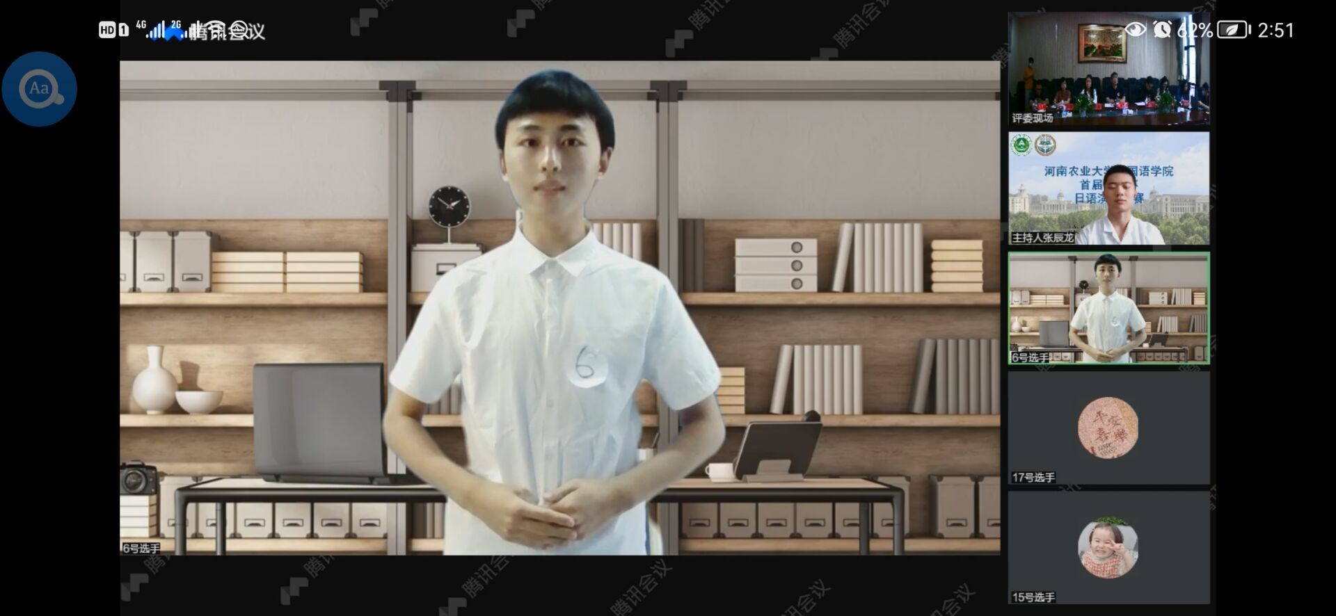 承办的第一届“知行杯”日语演讲比赛拉开帷幕。本次比赛采用线上线下相结合的方式,并进行实时线上直播。担任本次比赛的评委有日语系杨爽老师,张建宇老师和孙倩老师以及团委冯超老师,穆君仪老师。院党委书记邓振营、院长张俊杰出席致开幕词,并发表总结讲话。