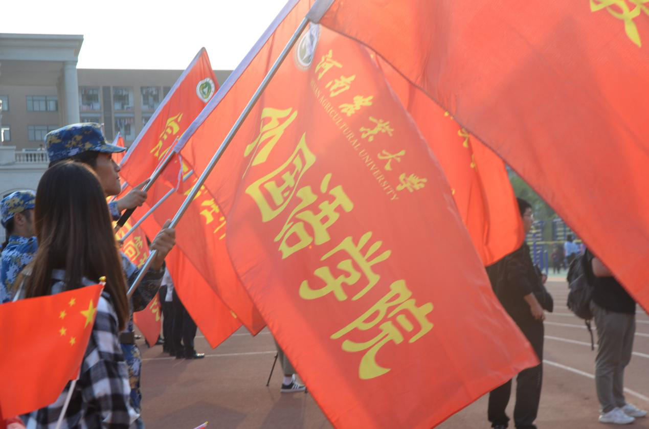 随后,校党委书记魏蒙关发表讲话,他指出学校发展与祖国发展息息相关,只有祖国的强盛,才有学校的繁荣。欢庆新中国成立70周年的同时,学校正在深入开展“不忘初心、牢记使命”主题教育,正在深入学习贯彻习近平总书记视察指导河南工作讲话精神,作为学校的一员,学生们要进一步找寻“初心”,勇担“使命”,与祖国共奋进,与时代同发展。他号召全校师生,脚踏实地、自觉把学校事业发展、个人成长进步融入国家发展之中,把爱国之志体现在教书育人之中,体现在成长成才之中。青年学生亦要练就过硬的报国本领,为民族复兴铺路架桥,为祖国建设添砖加瓦。