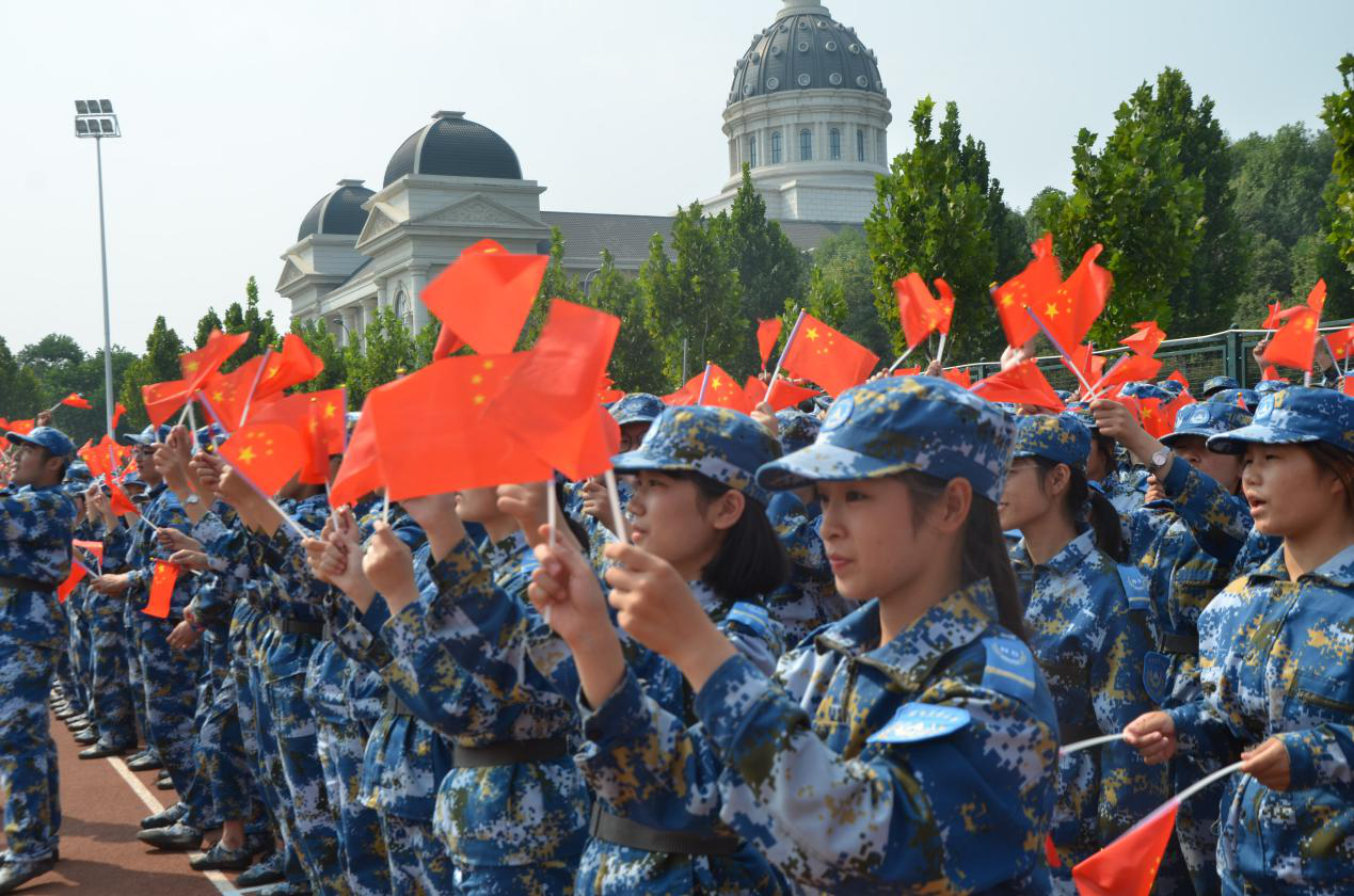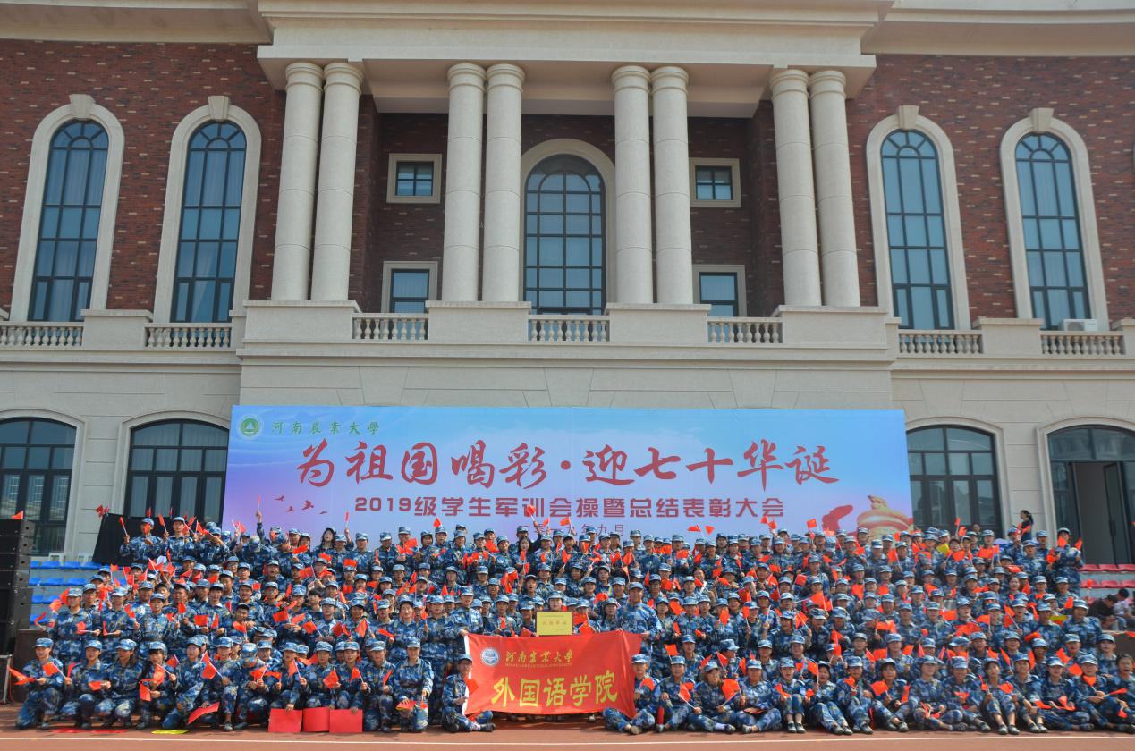 2019级全体新生在河南农业大学龙子湖校区田径场参加了新生军训会操暨总结表彰大会。