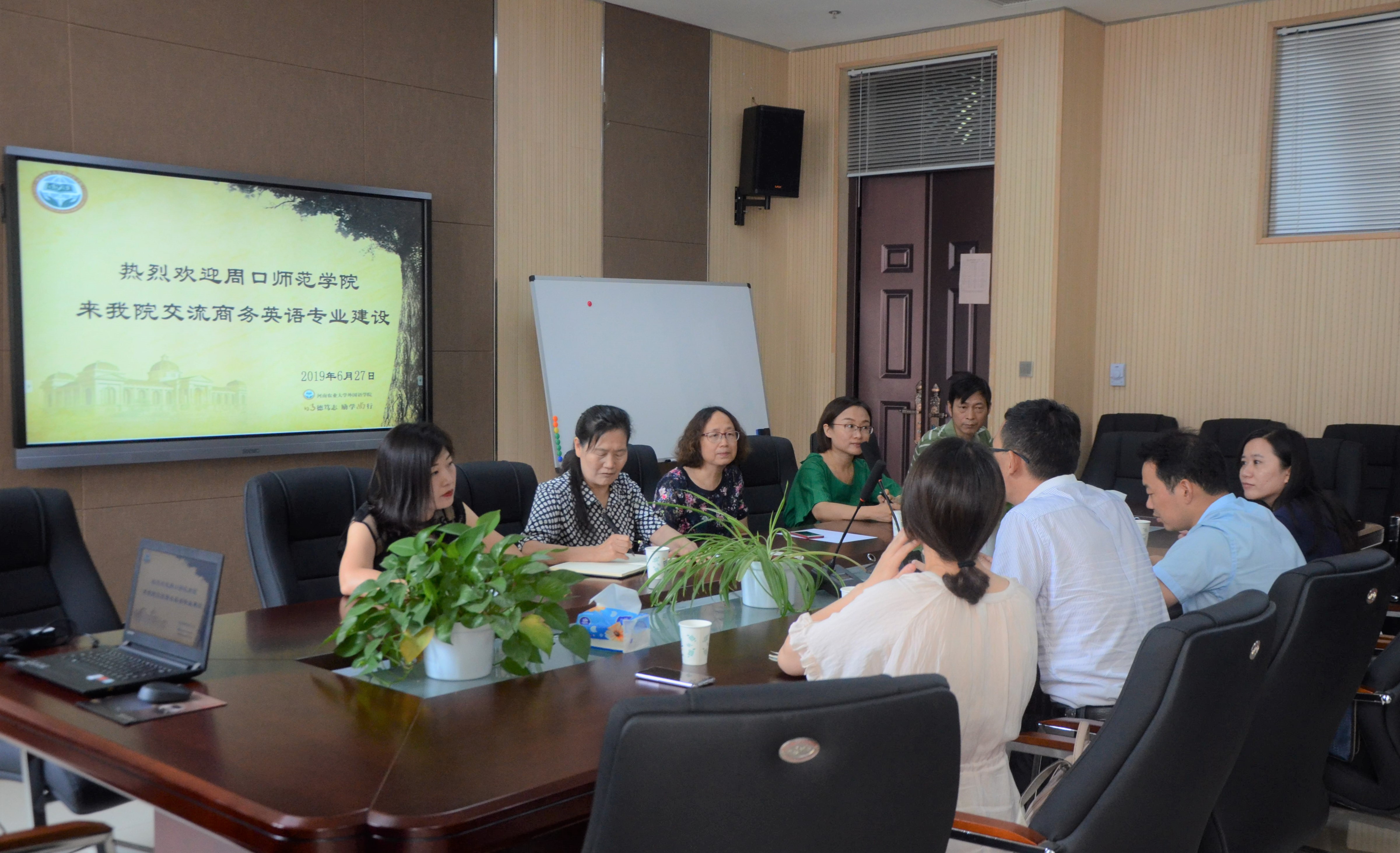一行的到来表示了热烈欢迎。随后,双方简要介绍各自的办学历程、办学特色、应用型人才培养模式改革以及近年来商务英语专业的发展情况。在聆听彼此珍贵办学经验之后,双方围绕师资力量的培养、商务英语课堂教学、学生语言表达能力的提升等方面展开了热烈的探讨。赵凤玲主任提出申报商务英语专业须按照国家标准来设置课程和学分,才能达到国家认定标准。关于师资力量的培养,赵主任建议可同其它Bet365网址