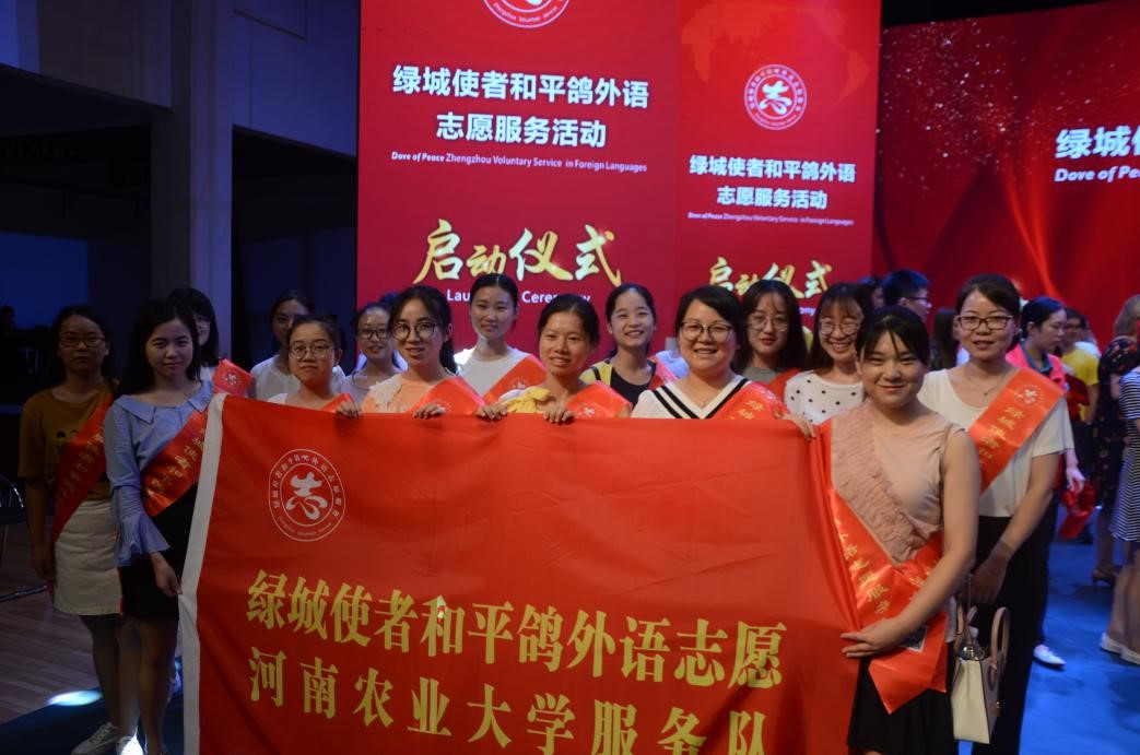 组织志愿者参加“志愿和平鸽,青春国际郑”郑州和平鸽外语志愿活动启动仪式。启动仪式在郑州幼儿高等师范专科学校(郑东新区)举行。