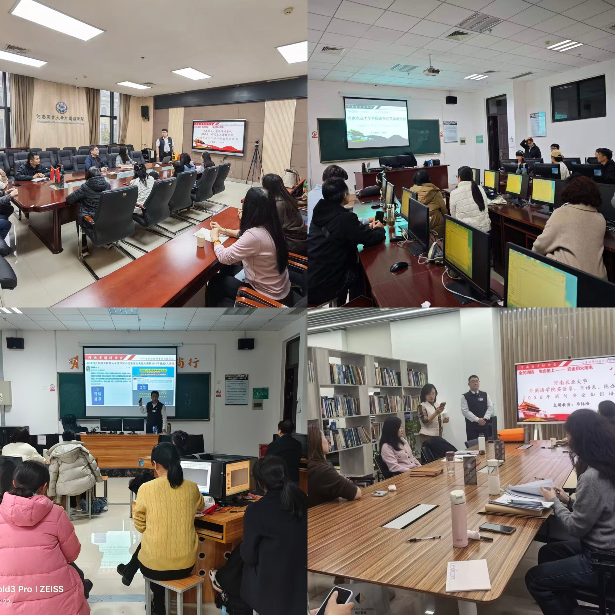 本次培训邀请河南省消防协会义务消防科普宣传服务队王梦阳、王胜强等教员进行专题授课与实操指导。培训紧扣校园消防安全重点,围绕火灾隐患排查、初期火灾扑救、消防器材规范使用、火场疏散逃生技巧等内容展开,采取理论讲解、案例警示、实操演练相结合的方式,确保安全教育入脑入心、技能掌握扎实有效。